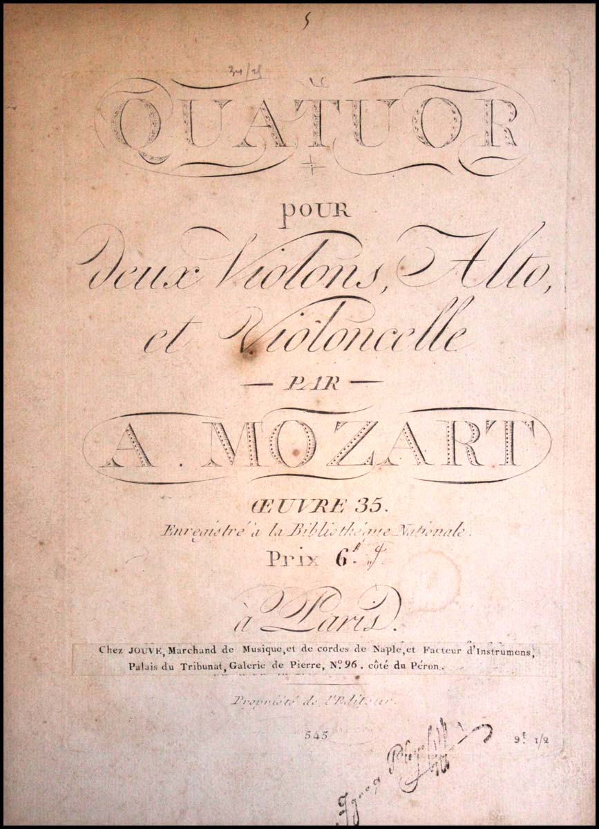 Mozart, Wolfgang Amadeus. (1756–1791). Quatuor pour deux Violons, Alto, et Violoncellle...Oeuvre 35. [String Quartet K. 499]. Paris: Pleyel et fils aîné. ca. 1805.