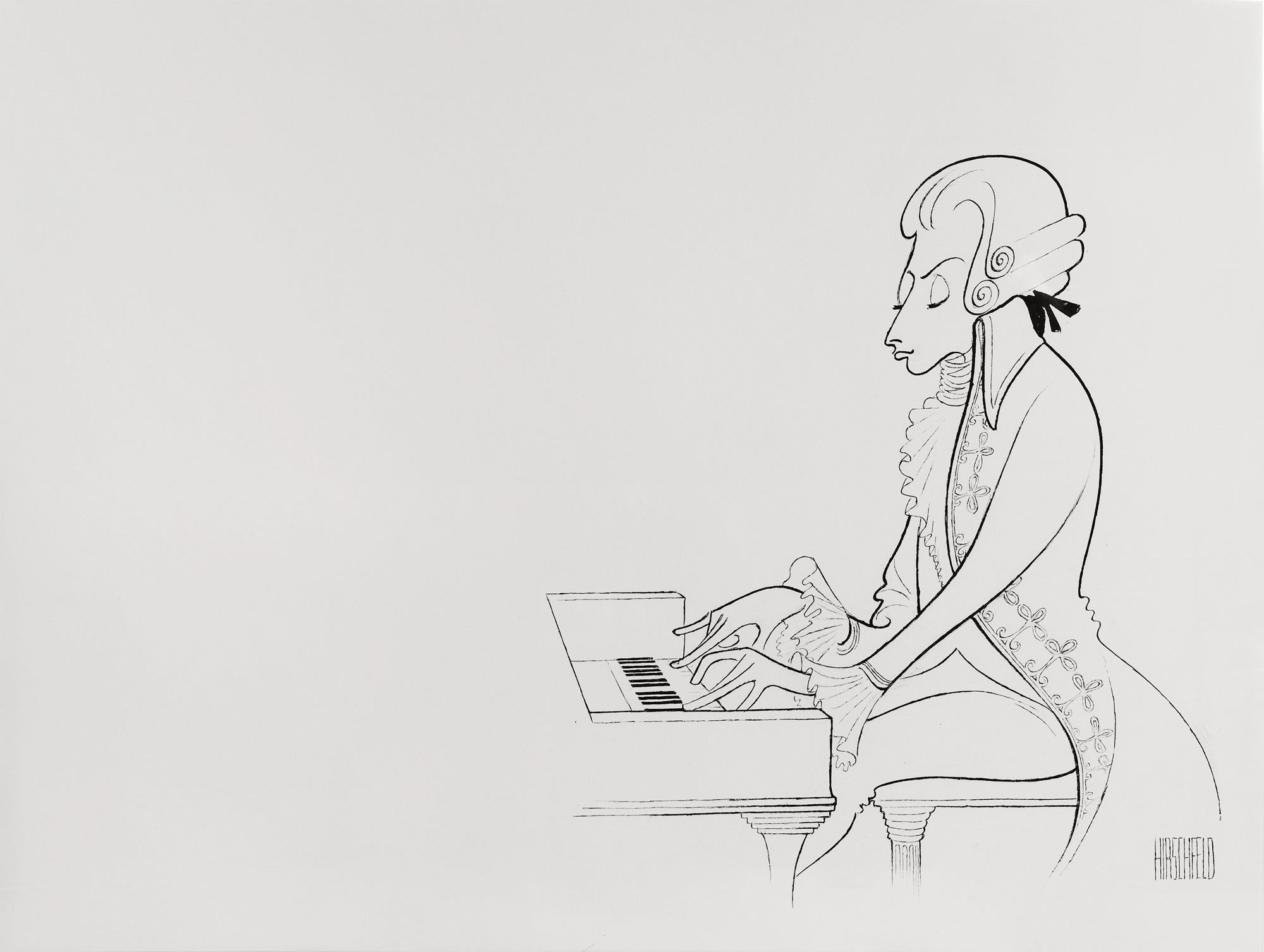 A spectacular and iconic original ink drawing of Mozart by the most famous caricaturist of the twentieth century.