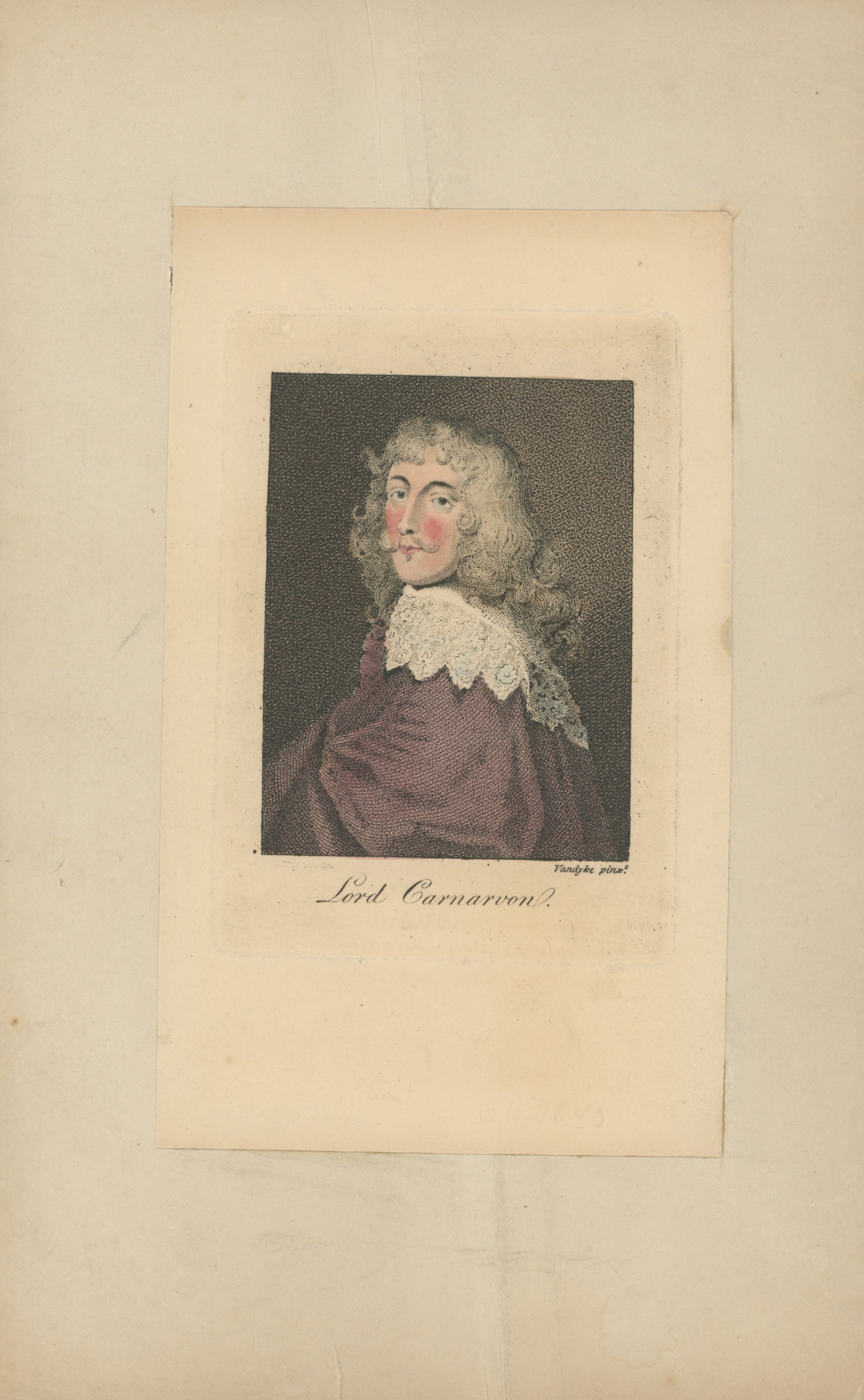 "Lord Carnarvon." Engraved. Mounted to sheet measuring 6 x 10.25 inches (15.2 x 26 cm.). In fine condition.