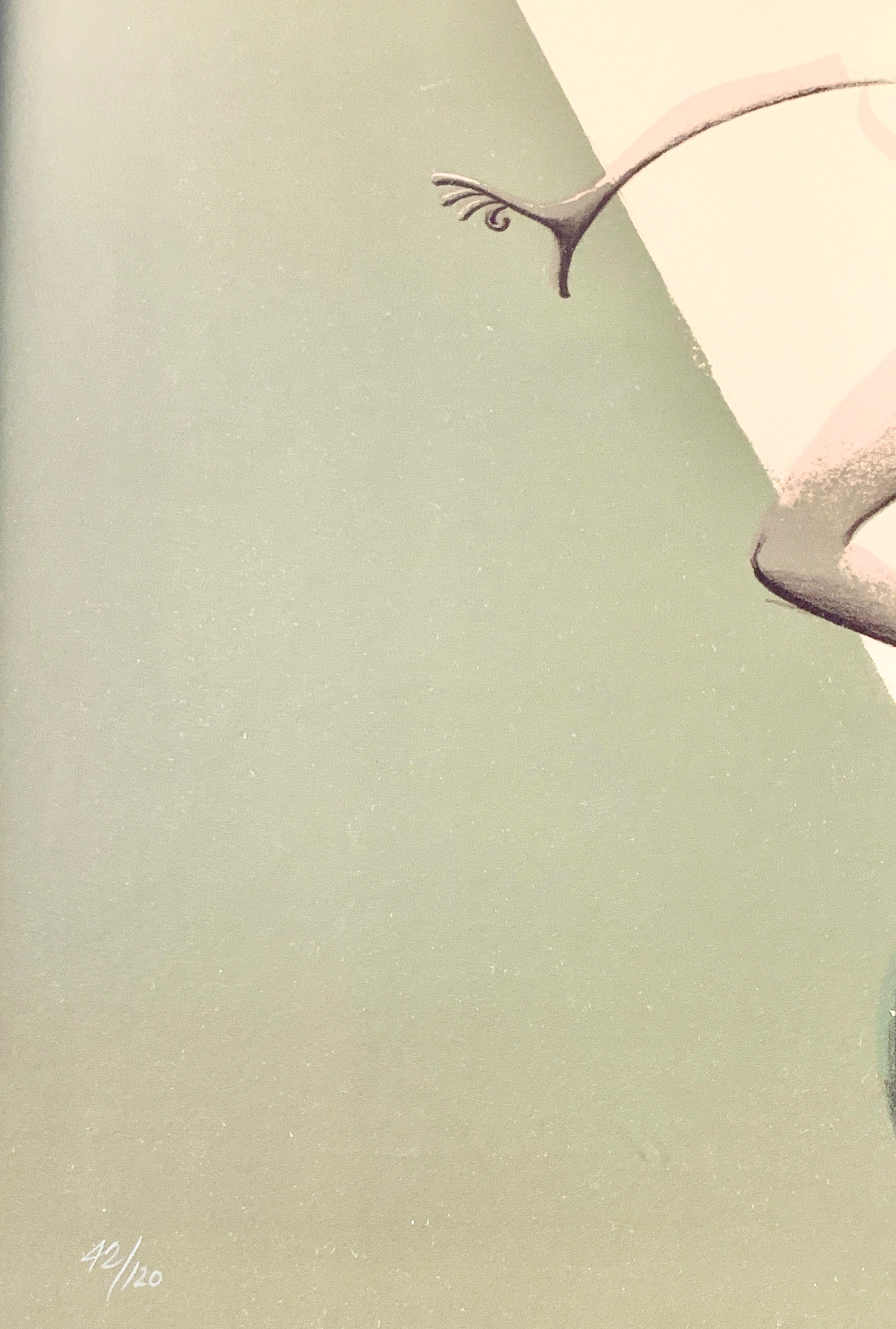 Though not recorded explicitly as such, to our view the present work very likely depicts the celebrated French ballet dancer, actress and chanteuse Renée Marcelle "Zizi" Jeanmaire (1924 - 2020). An exquisite, modernist ballerina who partnered such ballet greats as Rudolf Nureyev and Mikhail Baryshnikov, she also made Hollywood films with Bing Crosby (“Anything Goes,” 1956) and Danny Kaye (“Hans Christian Andersen,” 1952). But she was best-known as a flamboyant, seductive cabaret singer and dancer in the vibrant music halls of her native Paris in the post-World War II years. Famed for her gamine hair bob, scant black corset, diminutive torso but long legs, and her pink ostrich feather outfits, she became one of France’s best-loved artistes. Her stage appearances in London and the United States in 1949 transformed her into a global dance star.