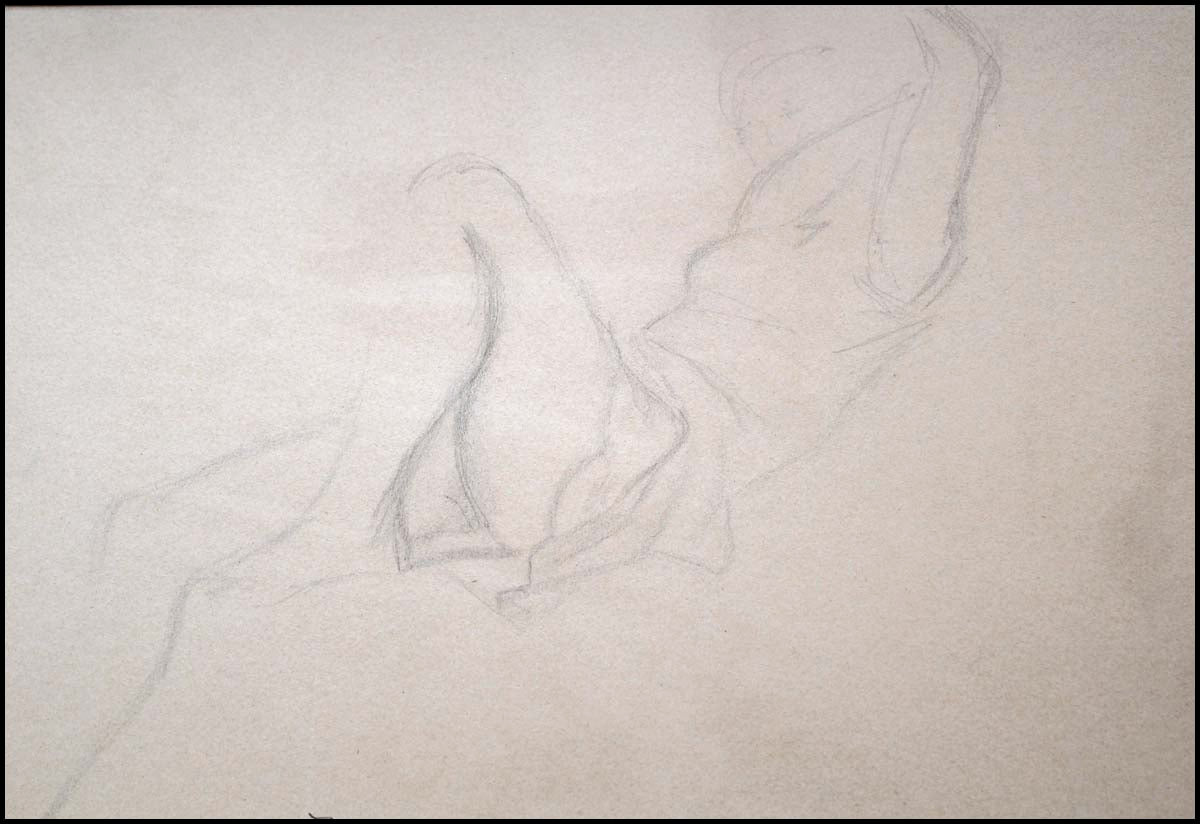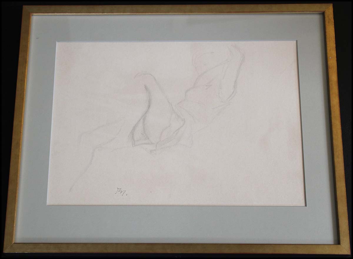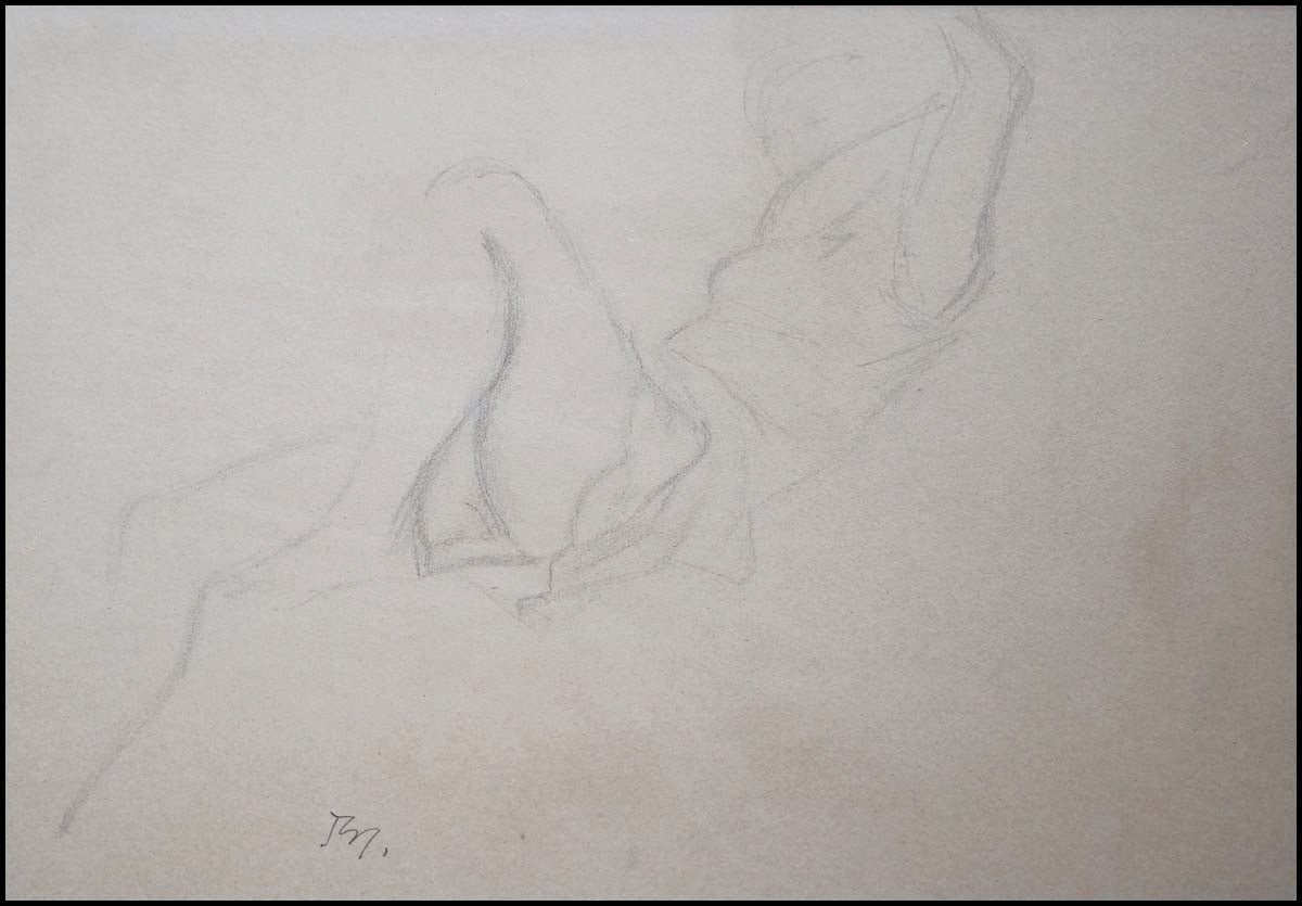 Balthus (Balthazar Klossowski de Rola, 1908–2001) [Curtis, Tony. (1925–2010)]. Study for 'Katia reading,'. Drawing, graphite on cream wove paper mounted on board, monogrammed lower left "Bs," ca. 1968. 11 3/4 x 15 7/8 inches. Monnier, Balthus Catalogue Raisonné of the Complete Works, 1999, p. 343, number D 1173.