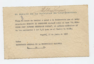 Le Corbusier [Charles-Édouard Jeanneret-Gris]. (1887 - 1965) Original Drawing (Bogota, 1947)