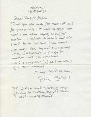 Cadmus, Paul. (1904-1999) [Anderson, Jon. (1937–2018)] Autograph Letter and Inscribed Photograph of Drawing