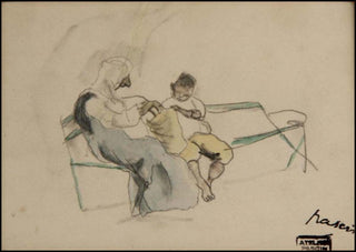 [Literature & Art] Pascin, Jules [Pinkas, Julius]. (1885 - 1930) Woman and Child on bench