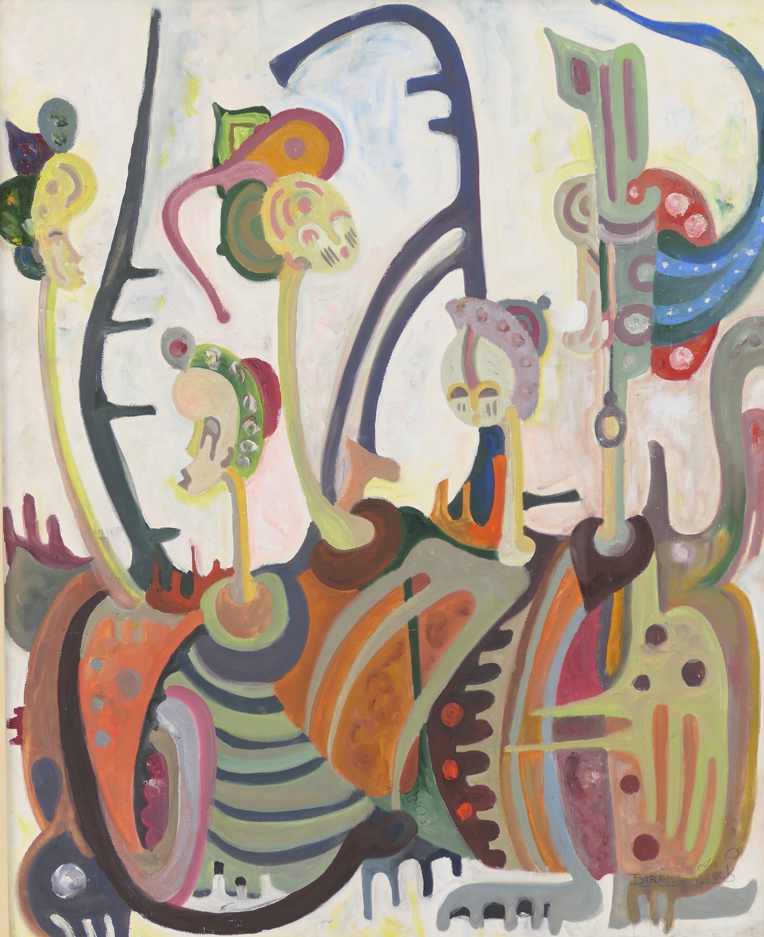 Seck, Birame. (Senegalese; deceased 2019). Abstraction with Masked Figures, ca. 1990.