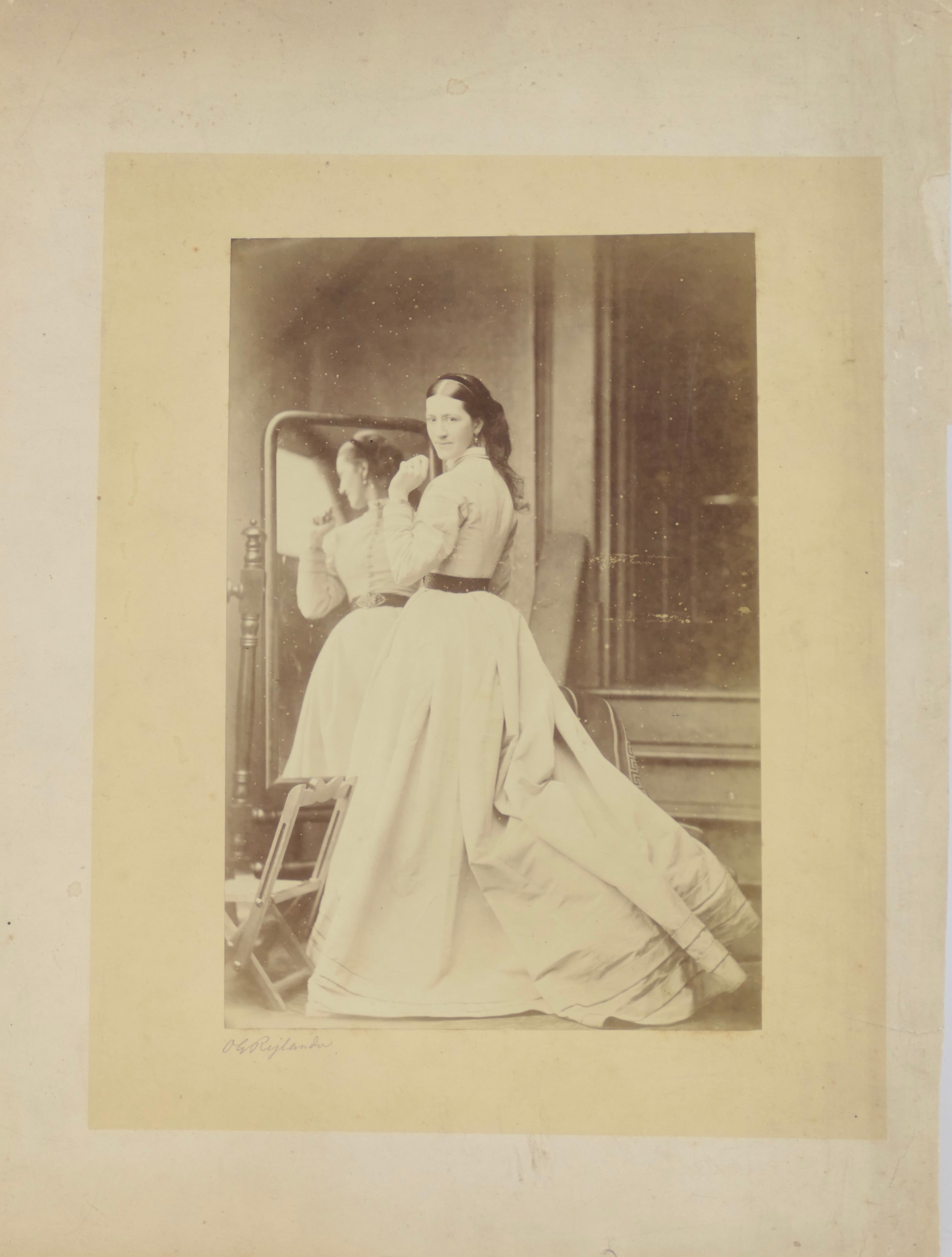 Born in Sweden, Rejlander studied painting as a young man, and later moved to Rome where he made a living making copies of Renaissance paintings. It was perhaps as a result of his early experience as a painter that Rejlander realised how useful photography could be to artists. He himself claimed that this moment of revelation came in 1852 after he’d bought some photographic reproductions of classical sculptures and was captivated by how photography succeeded in capturing the complicated folds of drapery. The present photograph is a fine testament to that revelation.