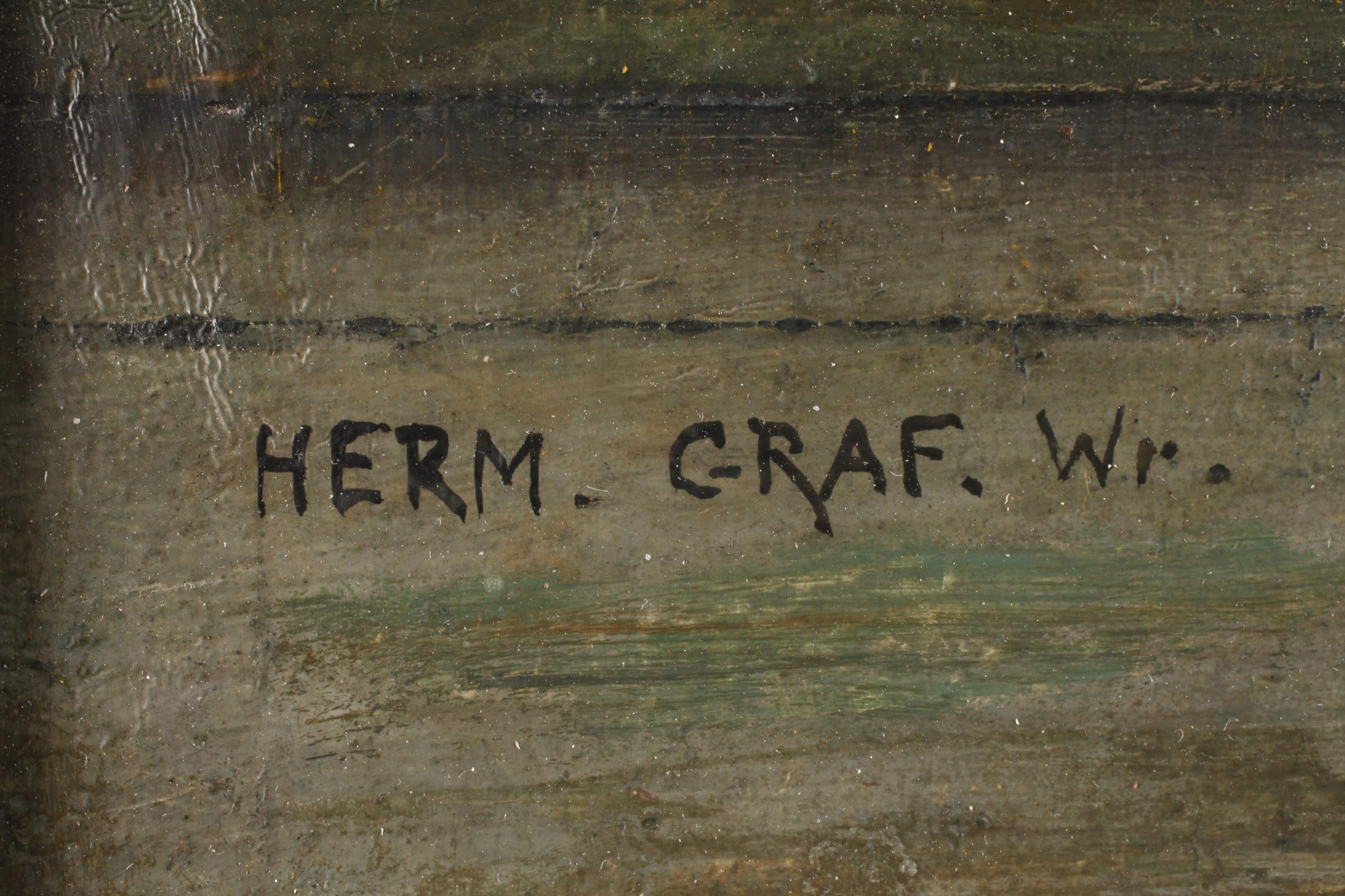 Son and pupil of the painter Franz Josef Adolf Cornelius Graf (1840-1915), Hermann initially worked as a musician, then studying 1897-1900 at the Weimar art school under Aristide Sartorio and Max Thedy, 1900-02 at the Munich academy under Carl von Marr and Ludwig von Löfftz, then travelling to Holland, Belgium and Denmark, subsequently settling in Weimar. He was represented at numerous exhibitions from 1904, including at the Glaspalast exhibition in 1904-20, at the Great German Art Exhibition at the Haus der Deutschen Kunst in Munich in 1937, and at the major art exhibitions in Berlin in 1905-20 and in Düsseldorf in 1911-20. A member of the Munich Artists' Co-operative, the General Art Co-operative and board member of the Pension and Retirement Institute for German Visual Artists in Weimar.