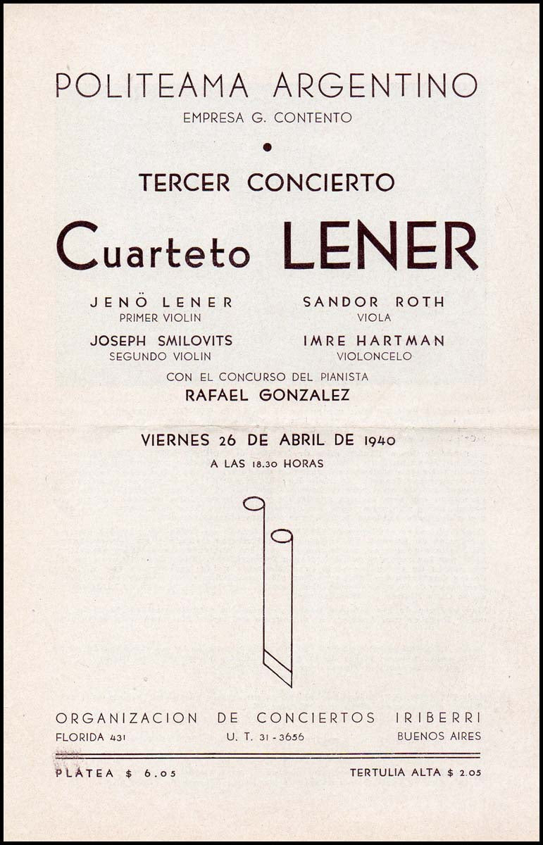 An unusual program from a Buenos Aires performance by the great Hungarian quartet, the first to record the complete Beethoven Quartets. In very good condition.