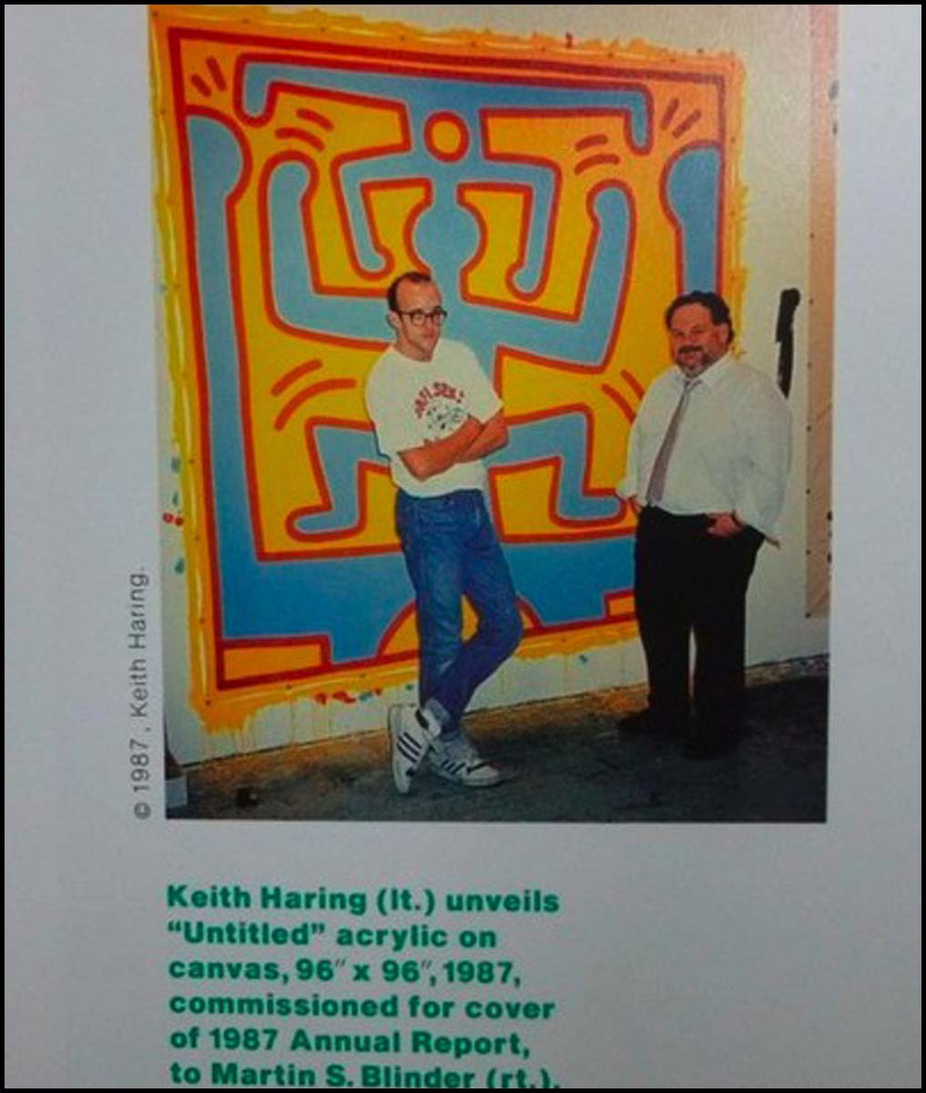 [Visual Arts] Haring, Keith. (1958 - 1990). Signed 1987 Marting Lawrence Annual Report. An unusual item from the American artist and social activist whose work responded to the New York street culture of the 1980s.