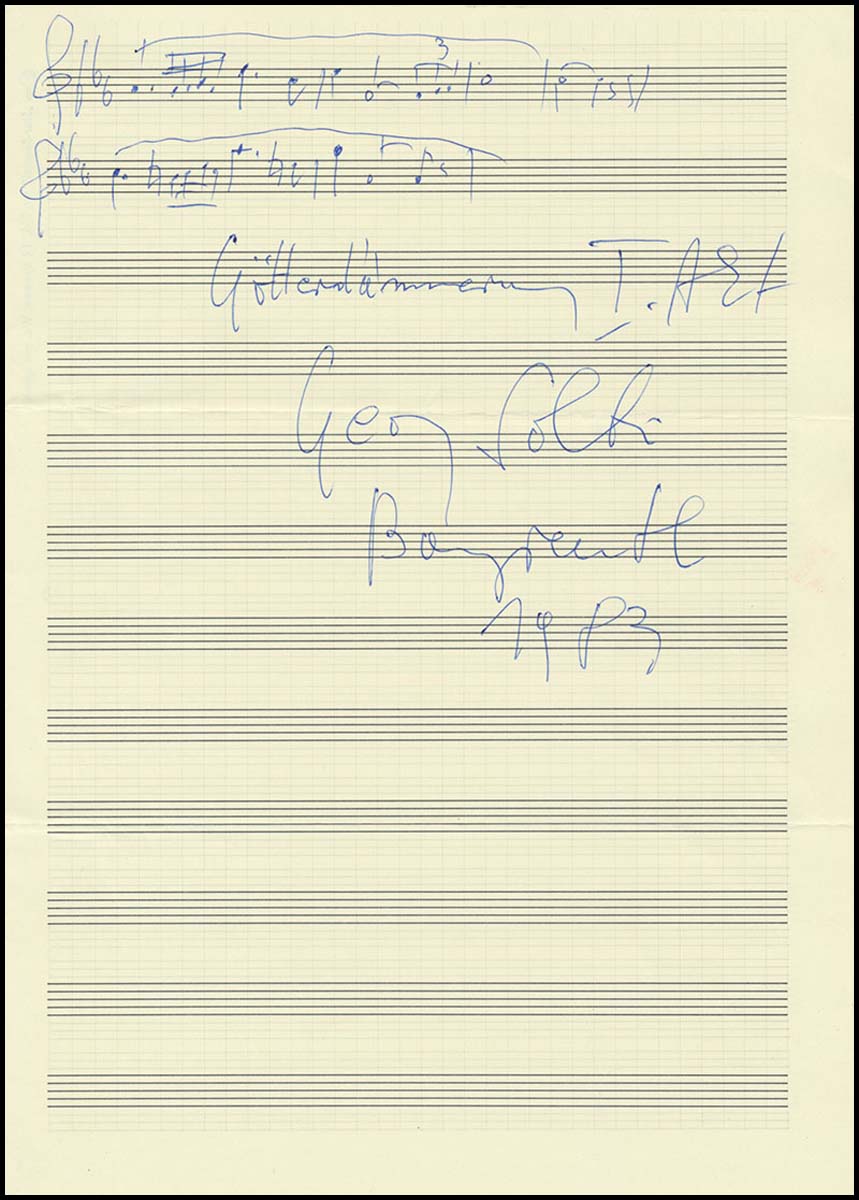 [Wagner, Richard. (1813–1883)] Solti, George. (1912–1997). Autograph Musical Quotation – "Götterdämmerung, I. Akt.".