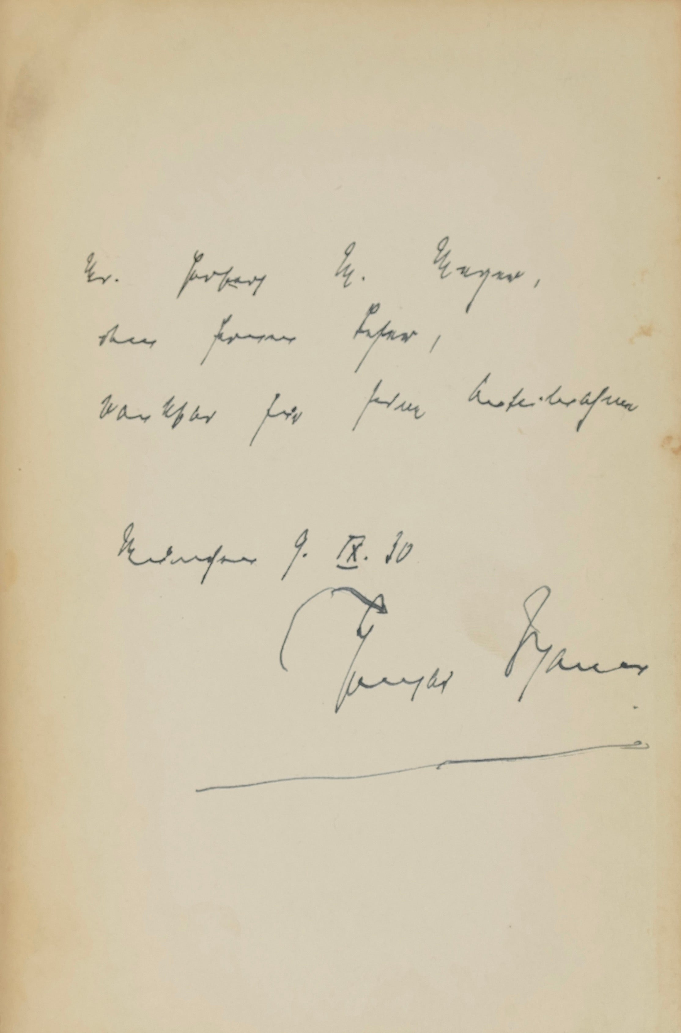 The recipient of the inscription was Herbert Marx Meyer (1903-1988), noted Detroit book collector who assembled a large collection of early 20th century literature. He corresponded with many of the authors of the time, and thus many of his books bear friendly and warm authorial inscriptions such as the present example.