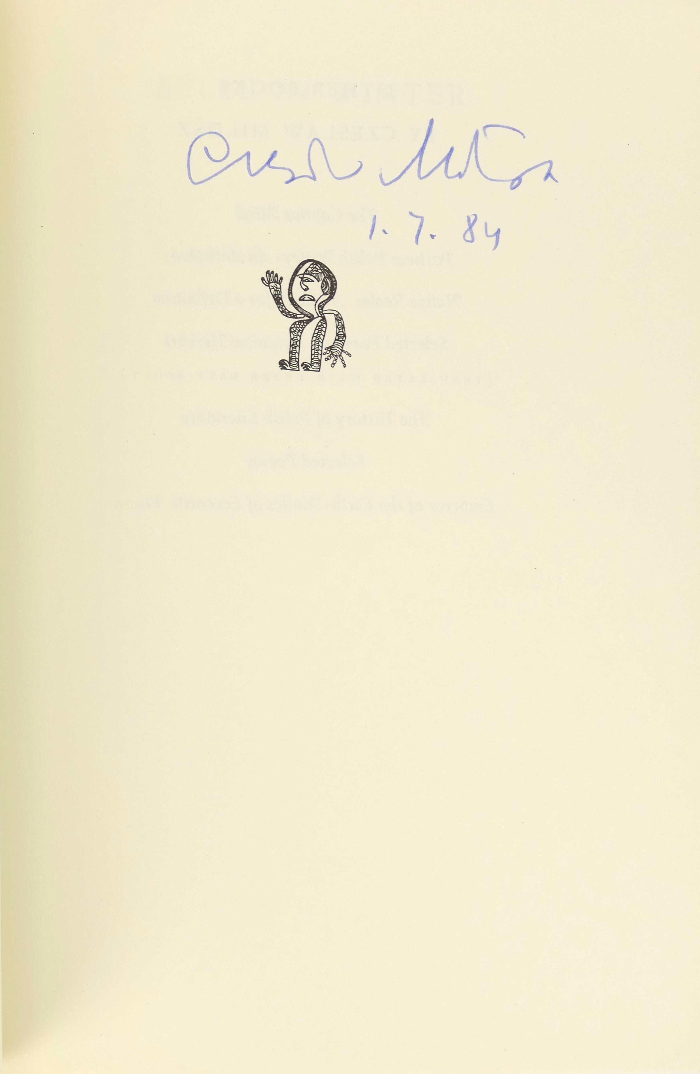 Milosz, Czeslaw. (1911–2004) "Bells in Winter" - Signed