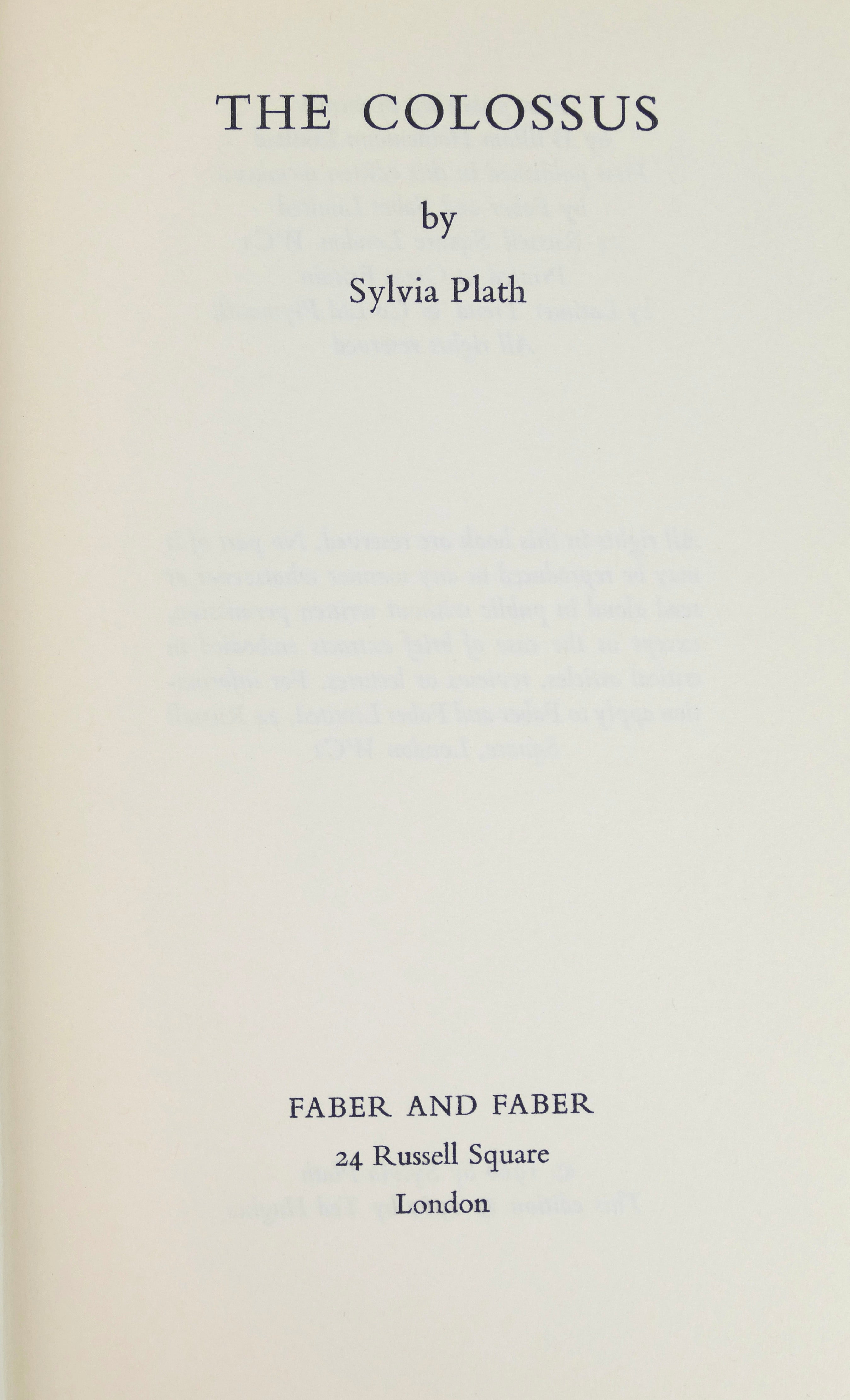 Plath, Sylvia. (1932-1963) [Bidart, Frank. (b. 1939)]. "The Colossus" - Ex-Frank Bidart. London: Faber and Faber. 1967.