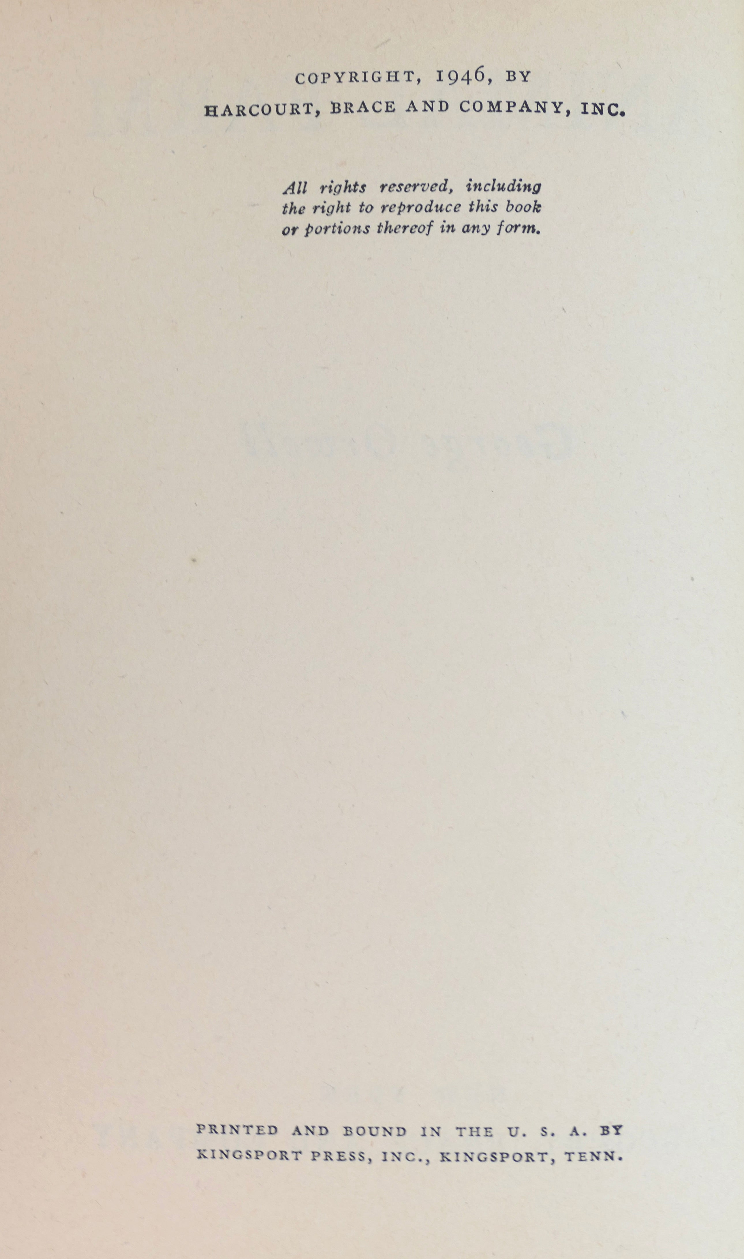 Orwell, George. (1903-1950). "Animal Farm" - Early Edition. New York: Harcourt, Brace and Company. 1946. Early Printing .