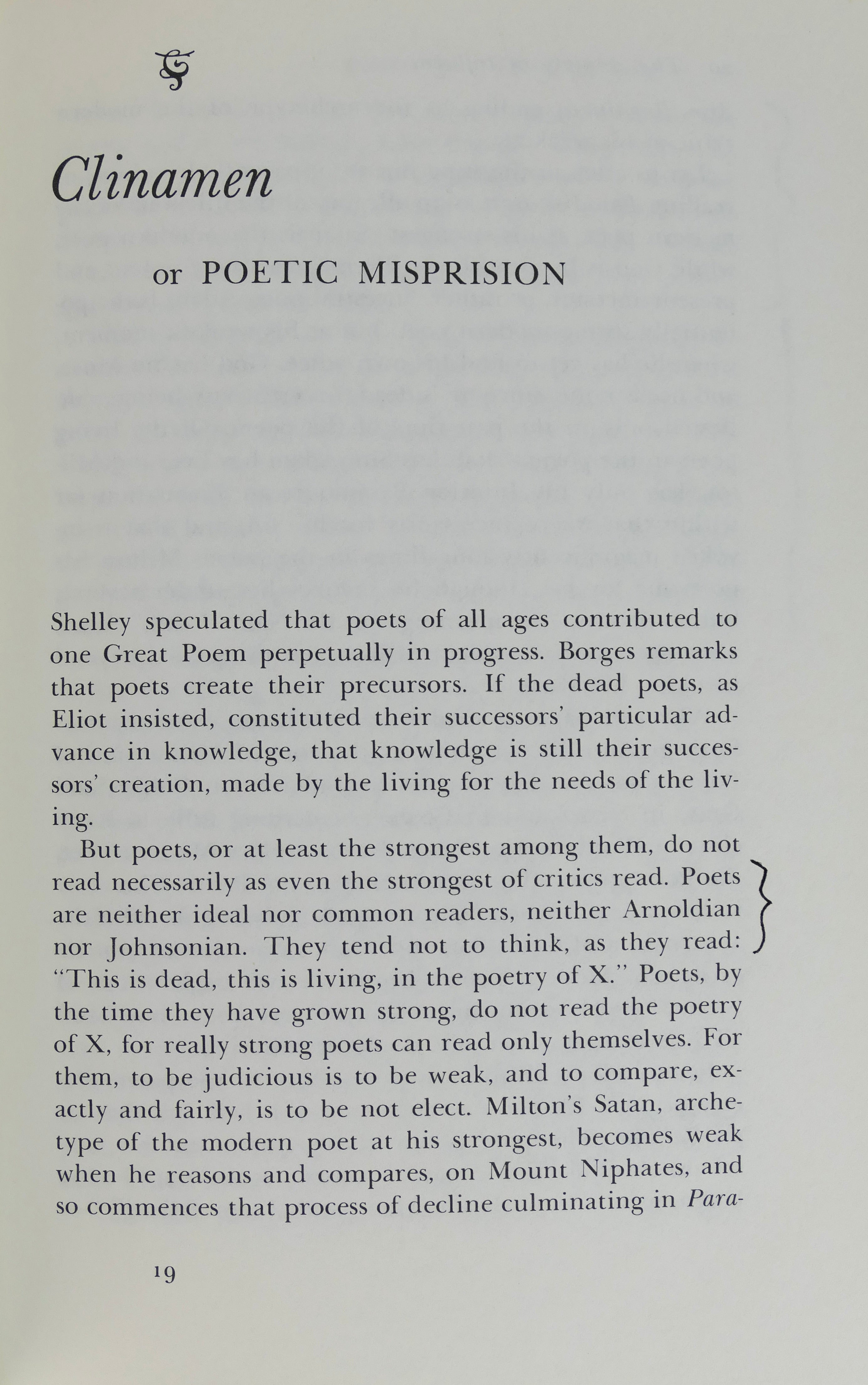 Hardcover. 8vo. 157 pp. Blue boards, gold lettering to spine. Dj in near fine condition with very light wear to the front and minor wear to the edges. A near fine copy of Bloom's controversial and influential literary criticism concerning the need for the great masters.
