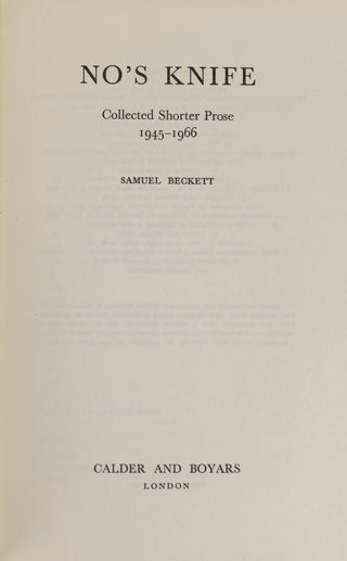 Beckett, Samuel. (1906-1989) [Bidart, Frank. (b.1939)] "No's Knife": "Collected Shorter Prose 1947-1966"