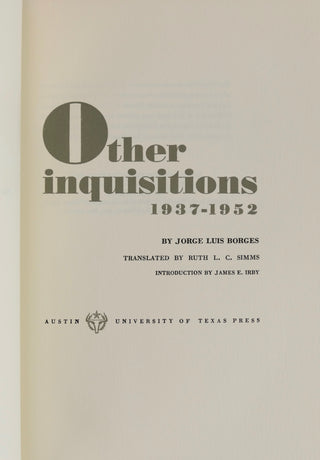 Borges, Jorge Luis. (1899-1986) (Translated by Ruth L.C. Simms) [Bidart, Frank. (b.1939)] "Other Inquisitions": "1937-1952"