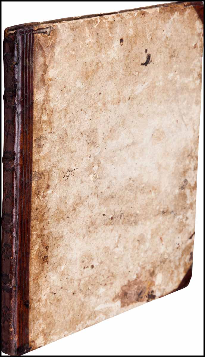 Contemporary half calf, ruled in blind, over drab boards; spine decoratively tooled in blind in compartments with four raised bands; edges sprinkled red. The binding is worn, with some small areas of surface loss; the boards, which appear to have been decorated at one time, are rubbed and stained. The text is quite browned; staining in the upper margin through most of the text, heaviest at the beginning; an additional faint dampstain in the outer blank margin throughout. Worming to the front free endpaper and first five leaves, including the title, affecting one word; three additional small holes in blank portions of the title, one neatly filled in, just touching the upper edge of one word in the imprint; another small hole through page 6, touching a couple of letters in the catchword on )(3v and the last line on A1v; worming to the rear free endpaper and last five leaves (pages 95-98 and the six pages of the "Register"), touching a few letters or numbers; a few tiny wormholes in the outer blank margin throughout. The hole where the volvelle would be attached on page 6 has resulted in the loss of two letters on page 5, and a short split around the circular support for the volvelle is also affecting a couple of letters (with no loss). Small rust hole in the lower blank margin of B1 (pages 9/10); a few additional small rust spots or stains, and an occasional ink smudge. A good, sound copy of this scarce edition. No copies of any edition have sold at ABPC in the last forty years, and only four copies of this edition are located in WorldCat, with an additional three in the Karlsruhe Virtual Catalog. Pencilled ownership inscription, dated 1822, on the front pastedown. Booklabel on front pastedown.