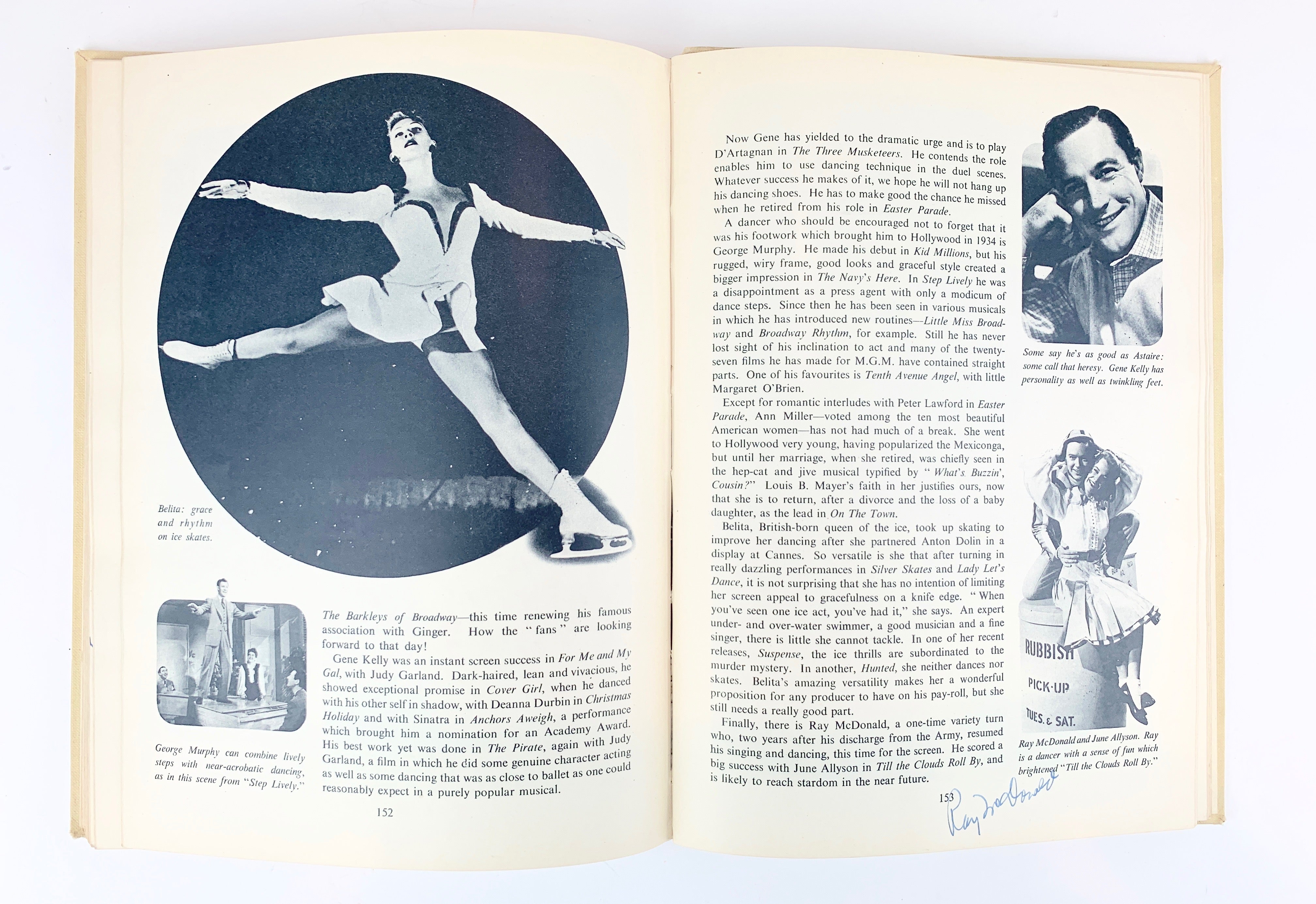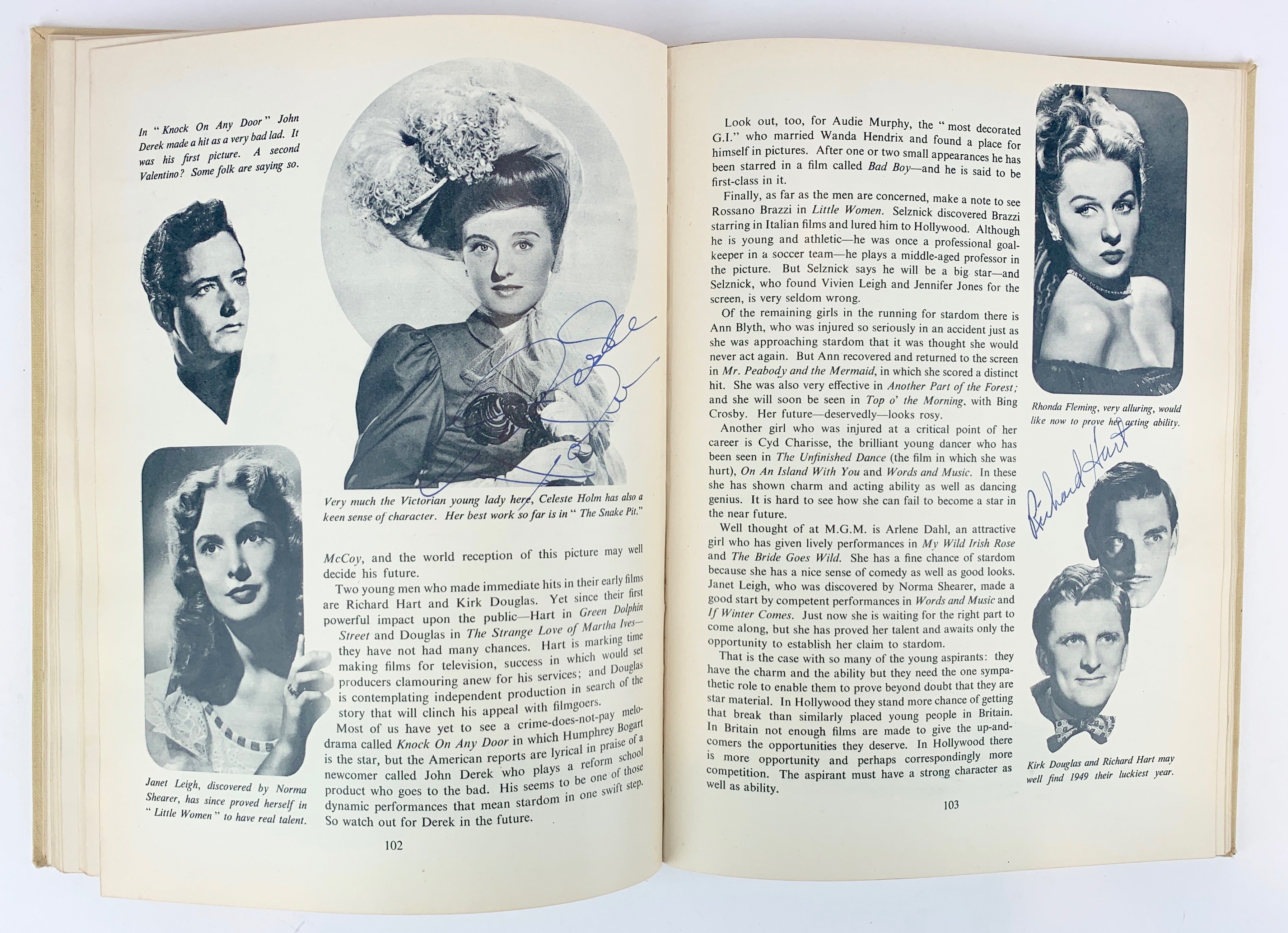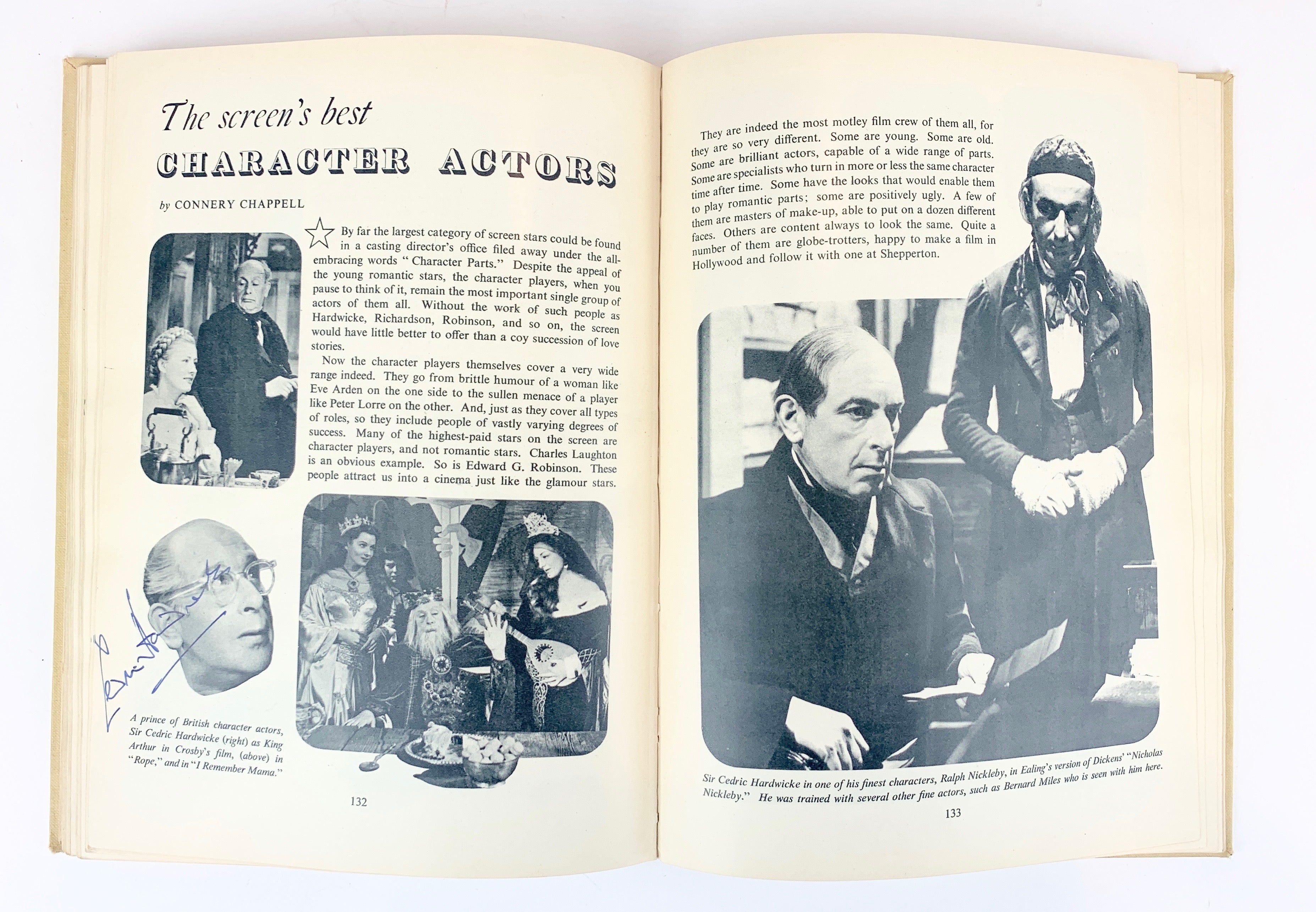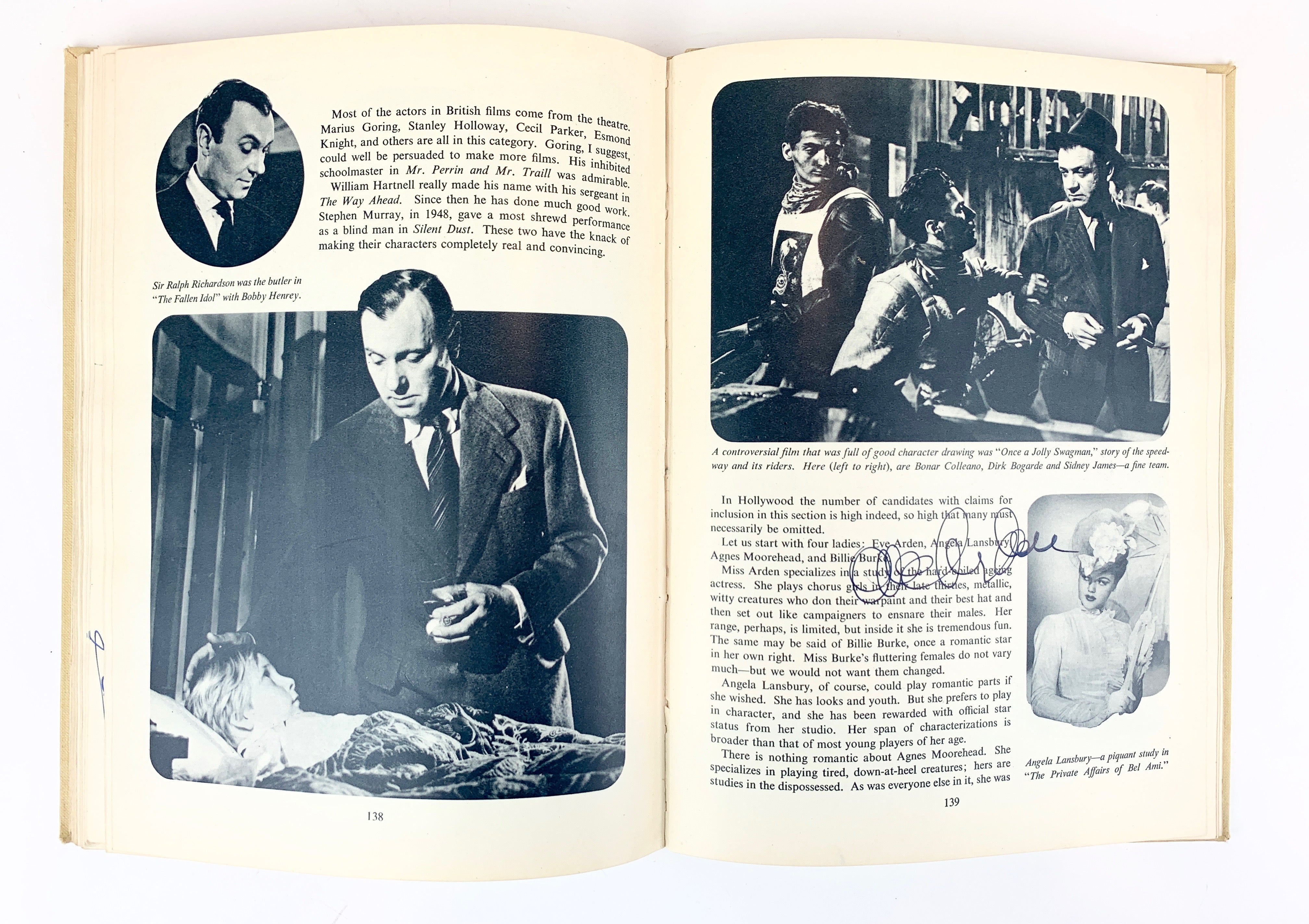 Signed edition of the film publication, with a remarkable collection of signatures throughout from Olivia De Havilland, Edward Arnold, Lex Barker, Jackie Cooper, Howard Da Silva, Dennis Day, Florence Eldridge, Paulette Goddard, Cedric Hardwicke, Richard Hart, Celeste Holm, Angela Lansbury, Fredric March, Ray McDonald, Burgess Meredith, Flora Robson, Jane Russell, Claire Trevor, and Shelley Winters. The majority of the signatures are signed to the pages of their respective photographs in various films. 8vo. Hardcover with white cloth, dust wrapper lacking. Undated. 175 pp. Spine somewhat rubbed, light wear, crack along interior binding between second and third gatherings, overall in fine condition.