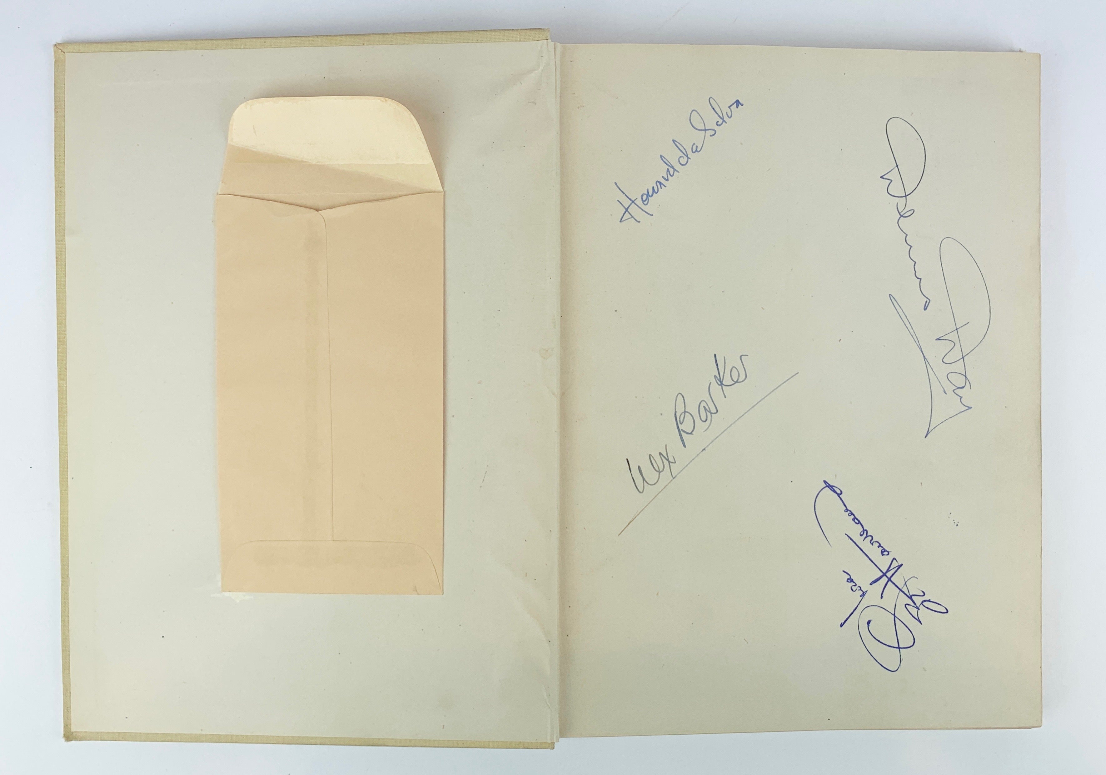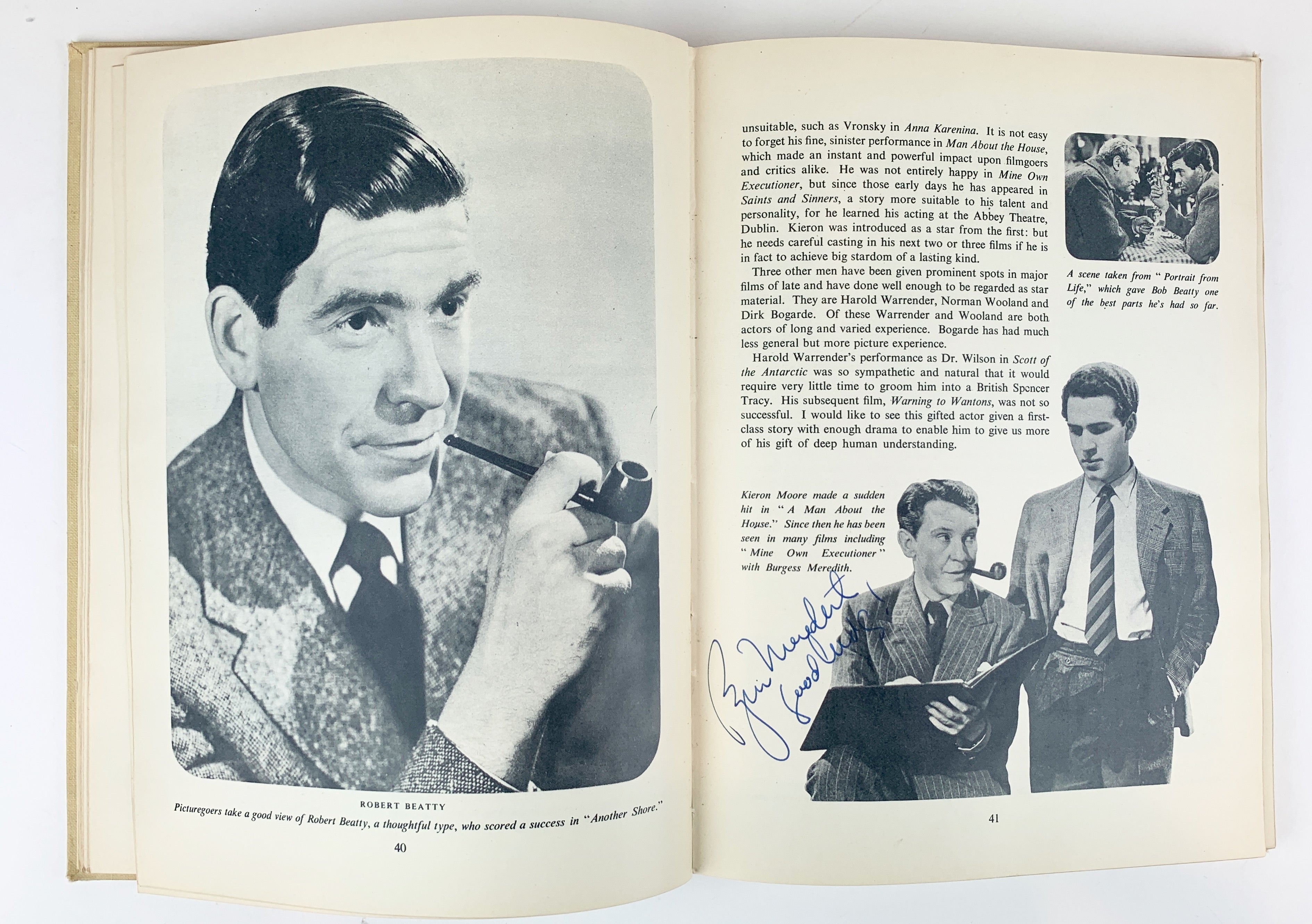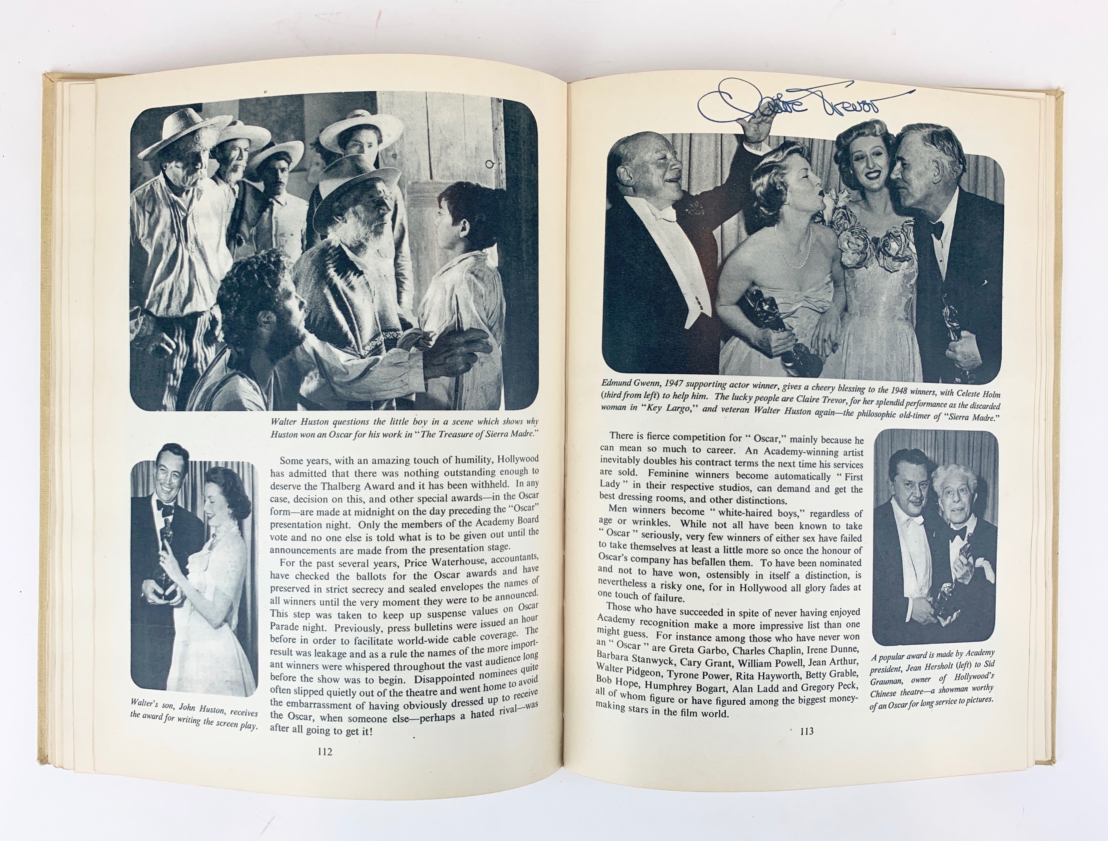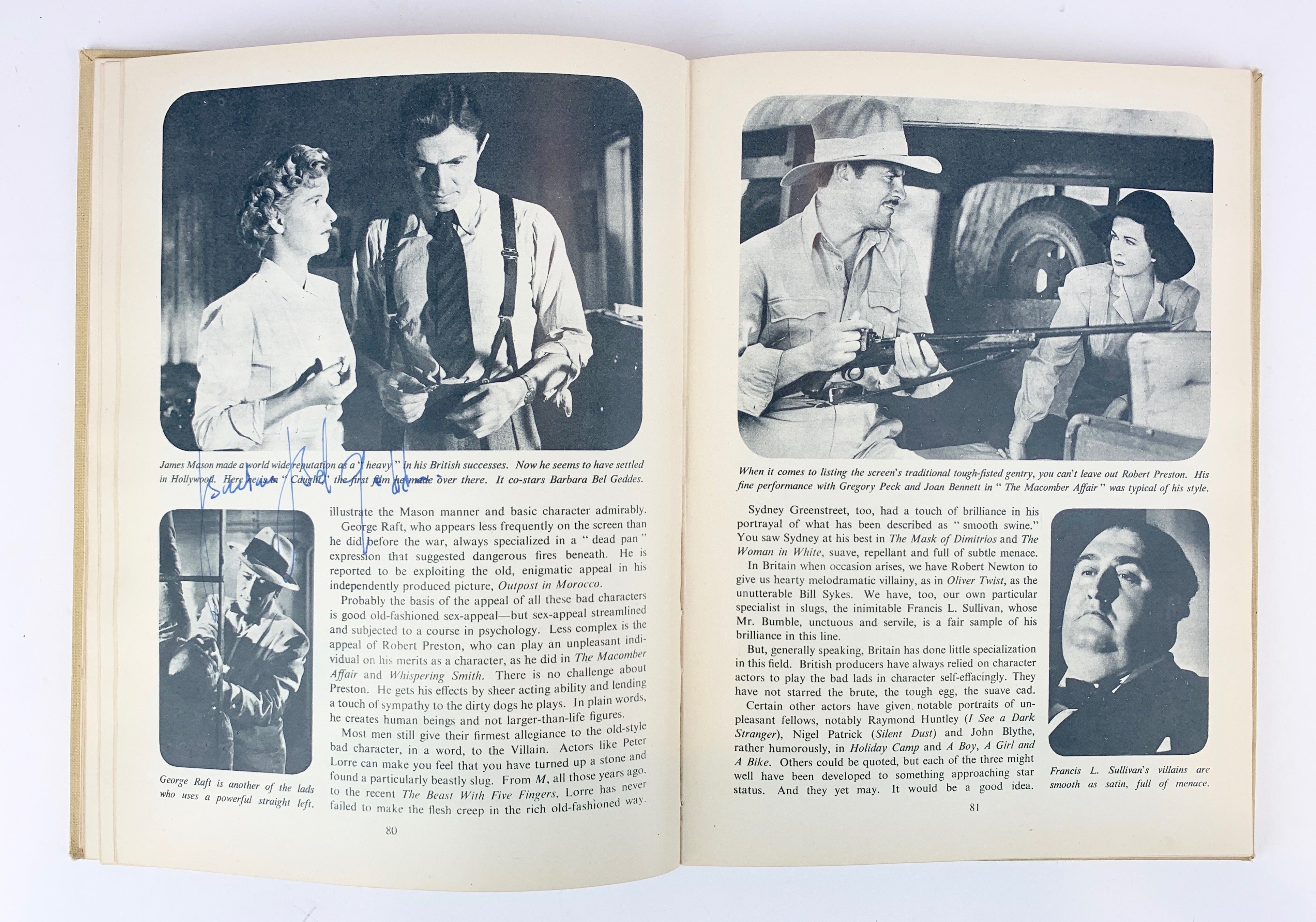Signed edition of the film publication, with a remarkable collection of signatures throughout from Olivia De Havilland, Edward Arnold, Lex Barker, Jackie Cooper, Howard Da Silva, Dennis Day, Florence Eldridge, Paulette Goddard, Cedric Hardwicke, Richard Hart, Celeste Holm, Angela Lansbury, Fredric March, Ray McDonald, Burgess Meredith, Flora Robson, Jane Russell, Claire Trevor, and Shelley Winters. The majority of the signatures are signed to the pages of their respective photographs in various films. 8vo. Hardcover with white cloth, dust wrapper lacking. Undated. 175 pp. Spine somewhat rubbed, light wear, crack along interior binding between second and third gatherings, overall in fine condition.