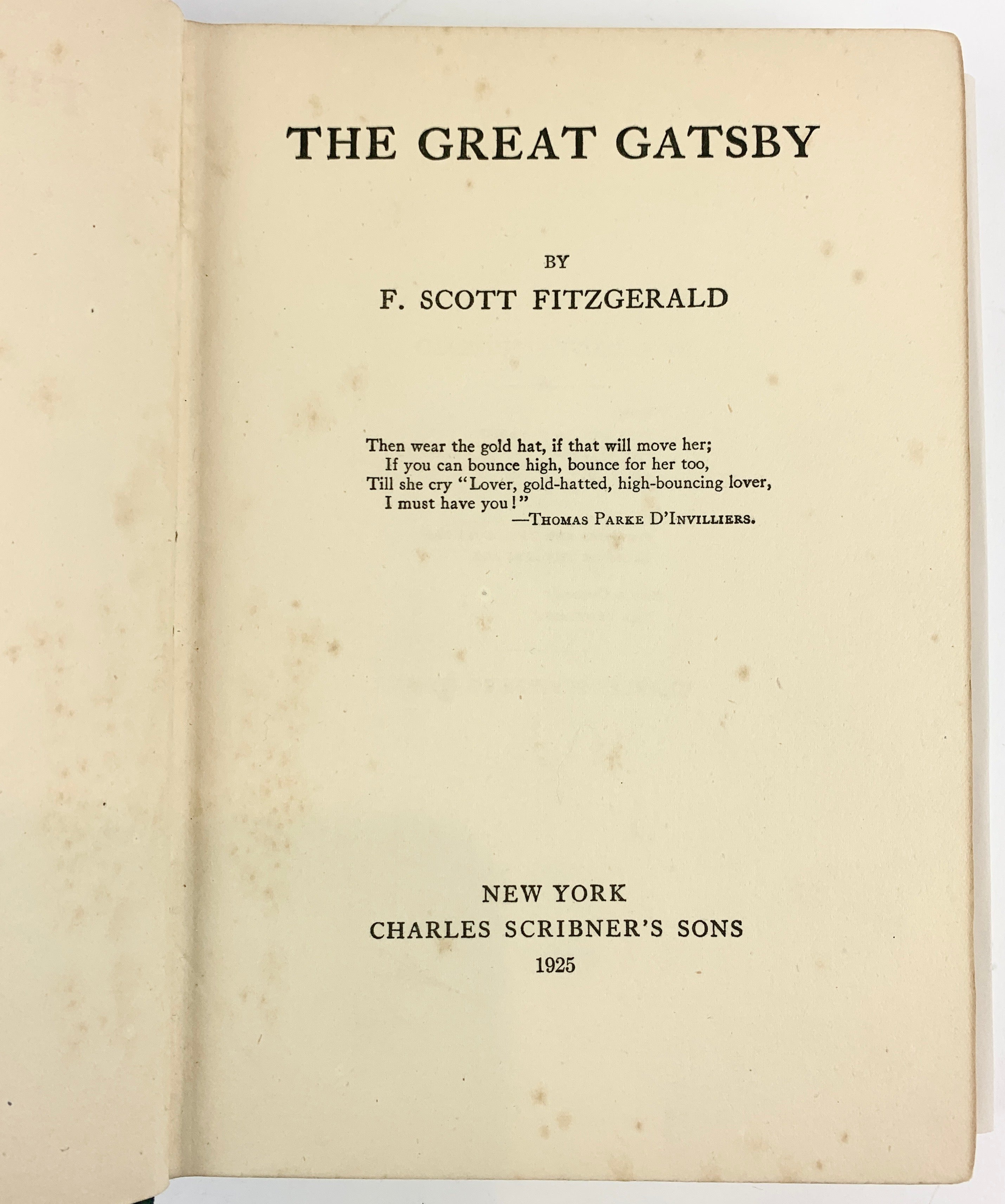 Fitzgerald, F. Scott. (1896–1940). The Great Gatsby - FIRST EDITION. New York: Charles Scribner's Sons. 1925. First.