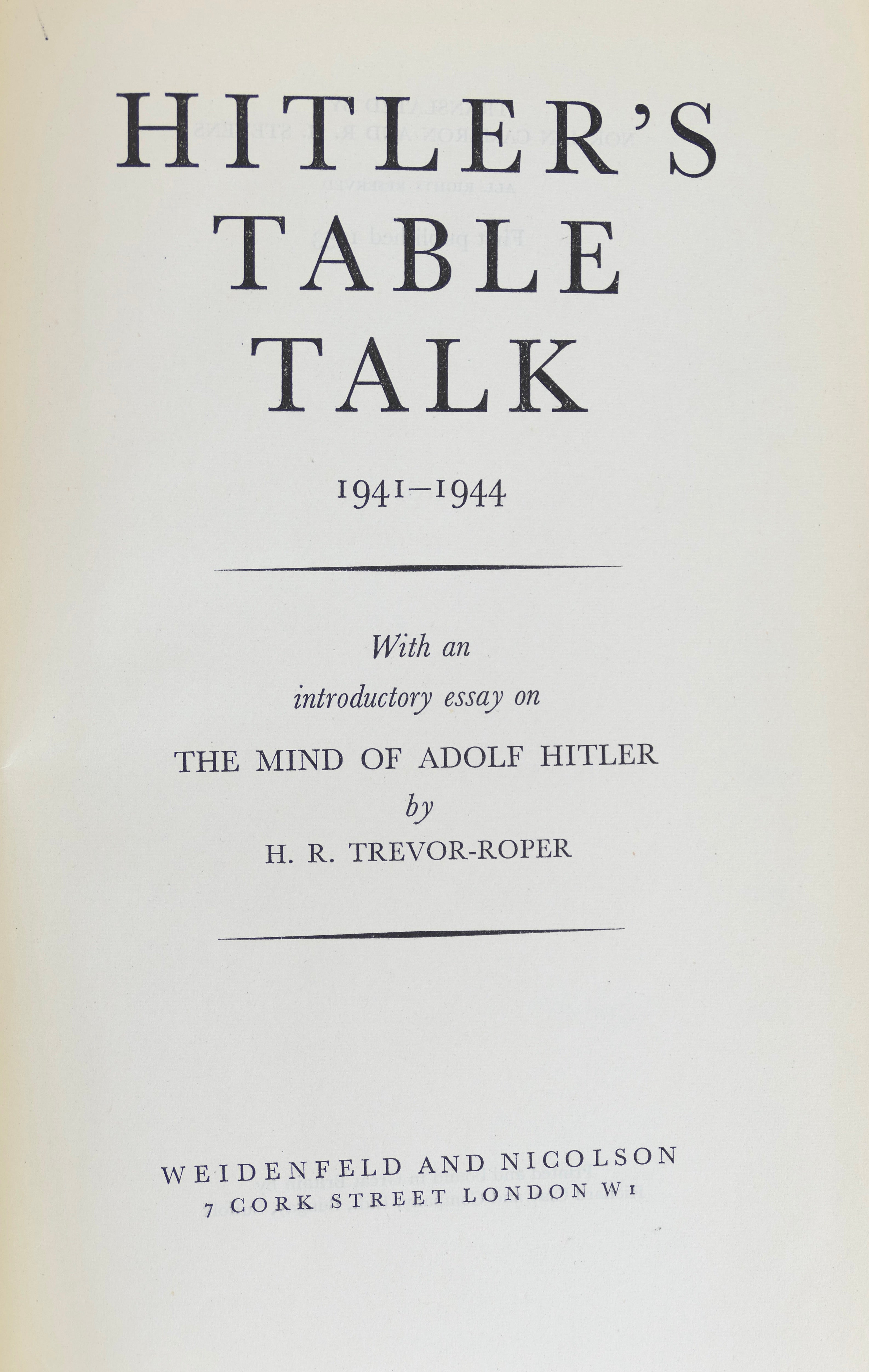 Trevor-Roper, Hugh. (1914-2003) & Cameron, Norman. (1905-1953) & Stevens, R. H. (1893-1967) . Hitler's Table Talk. London: Weidenfeld and Nicolson. 1953.