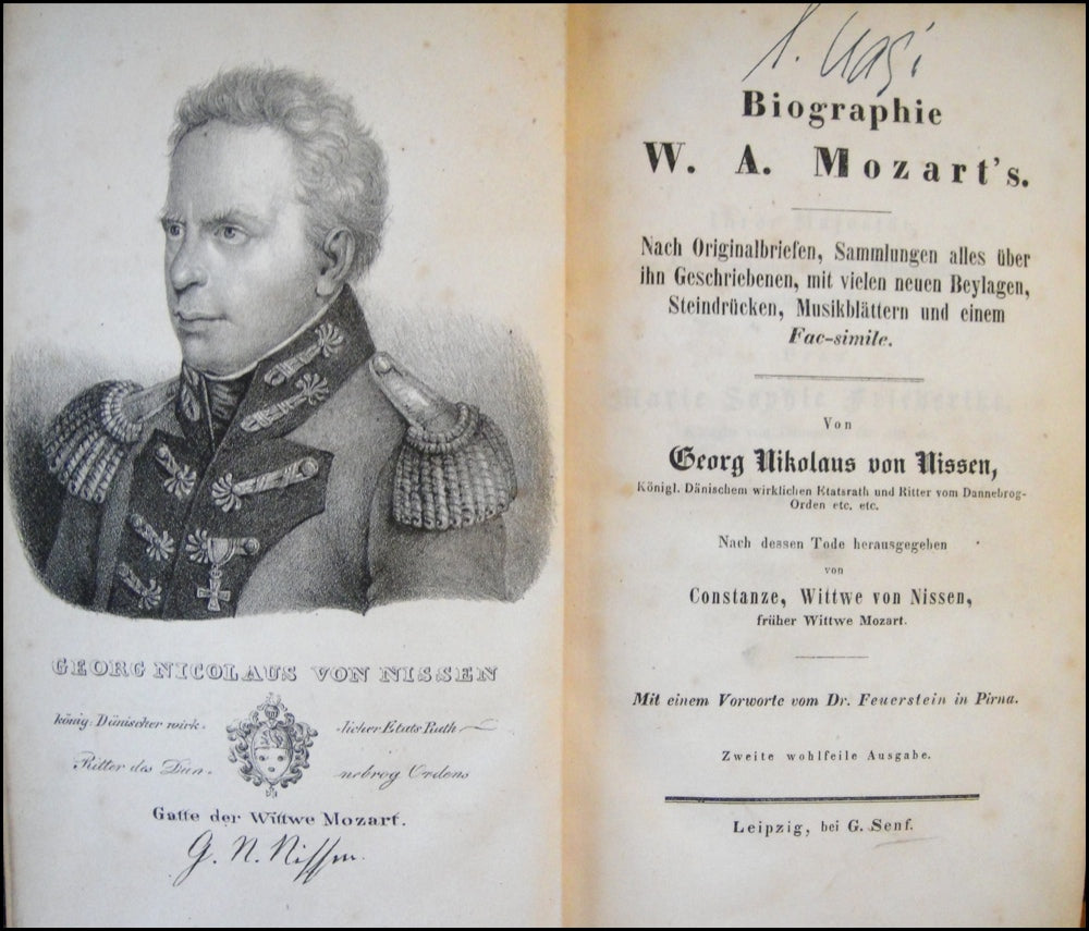 [Mozart, Wolfgang Amadeus. (1756–1791)] Nissen, Georg Nicolaus von. (1761–1826) Biographie W. A. Mozart's. Nach Originalbriefen, Sammlungen alles über ihn Geschriebenen, mit vielen neuen Beylagen, Steindrücken, Musikblättern und einem Facsimile