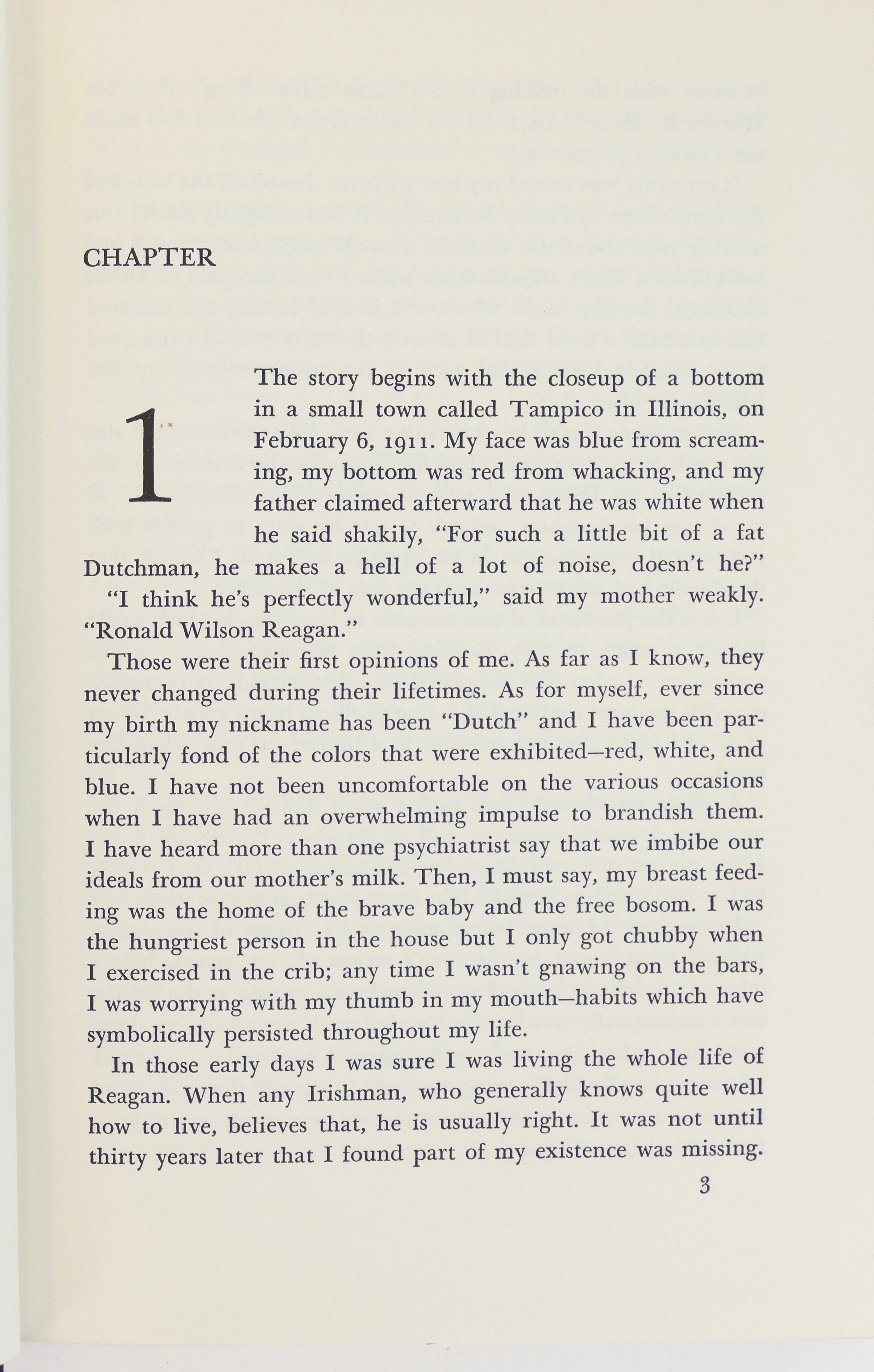 Hardcover. 8vo. 316 pp. Signed to the front free endpage of the early autobiography of the former president, "Best Wishes / Ronald Regan / 7/27/65." Near fine with a strip of toning to the signed ffe, in a near fine dust jacket. An especially desirable signed but not personally inscribed copy.