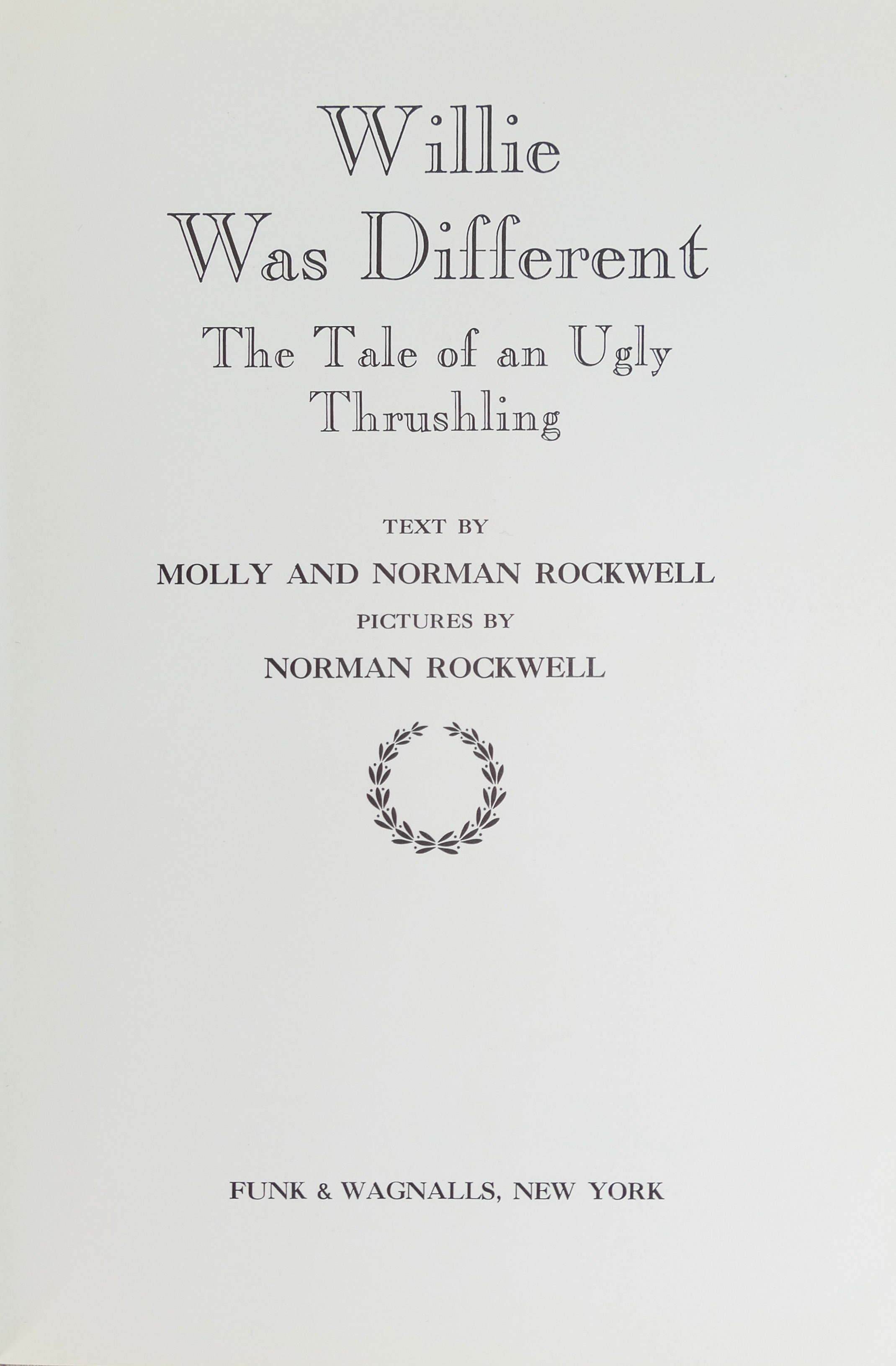Rockwell, Norman. (1894 - 1978) Rockwell, Molly. (1961-1978). "Willie Was Different: The Tale of an Ugly Thrushling" - Signed. New York: Funk & Wagnalls. 1967. First.