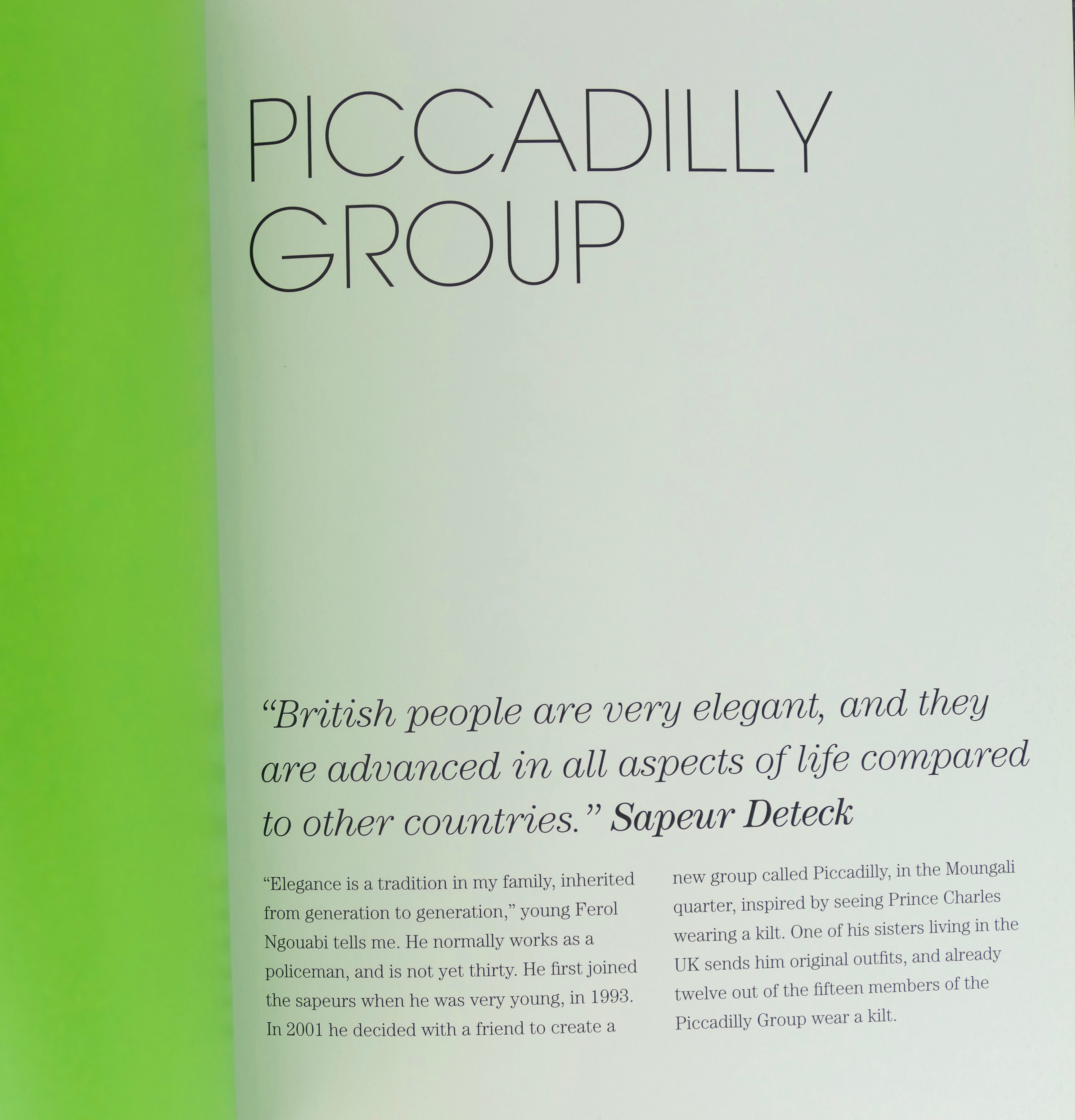 Hardcover with colorful illustrated boards. Small 8vo (approx 8 x 6 inches). 224 pp. "The importance of being elegant...A journey with the Sapeurs of Bacongo, a district of Brazzaville in the Congo, and the true birthplace of Sape, the religion of style." (preliminary text)