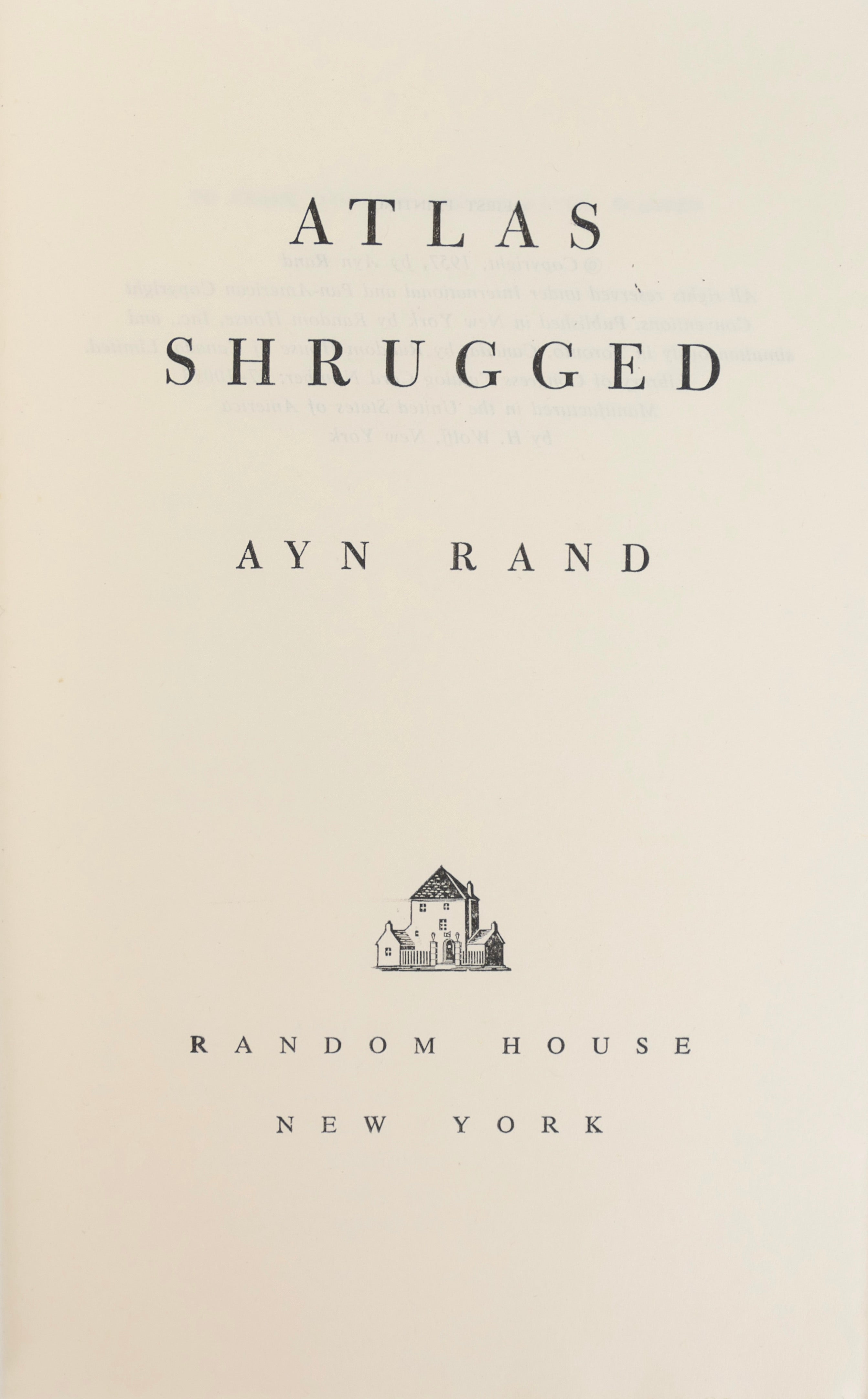 Rand, Ayn. (1905 - 1982). "Atlas Shrugged" - First Edition. New York: Random House. 1957. First Edition, First Printing.