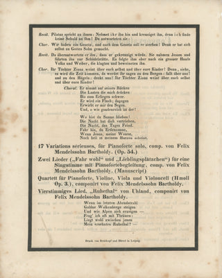 [Mendelssohn-Bartholdy, Felix. (1809–1847)] Original 1851 Leipzig Conservatory Program on the Anniversary of the Composer's Death