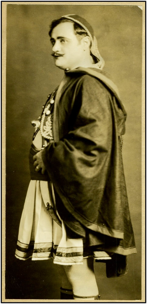 A superb original photograph of the great tenor, shown in costume as Enzo in a 1924 Metropolitan Opera production of La Gioconda. 7 X 3.5 inches.