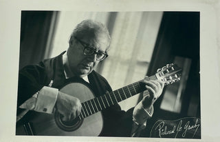 72. Segovia, Andrés. (1893–1987) [de Grab, Richard. (1927–2001)] "The guitar is like a small orchestra seen through backwards binoculars..." - Autograph Quotation Signed with Original Photograph