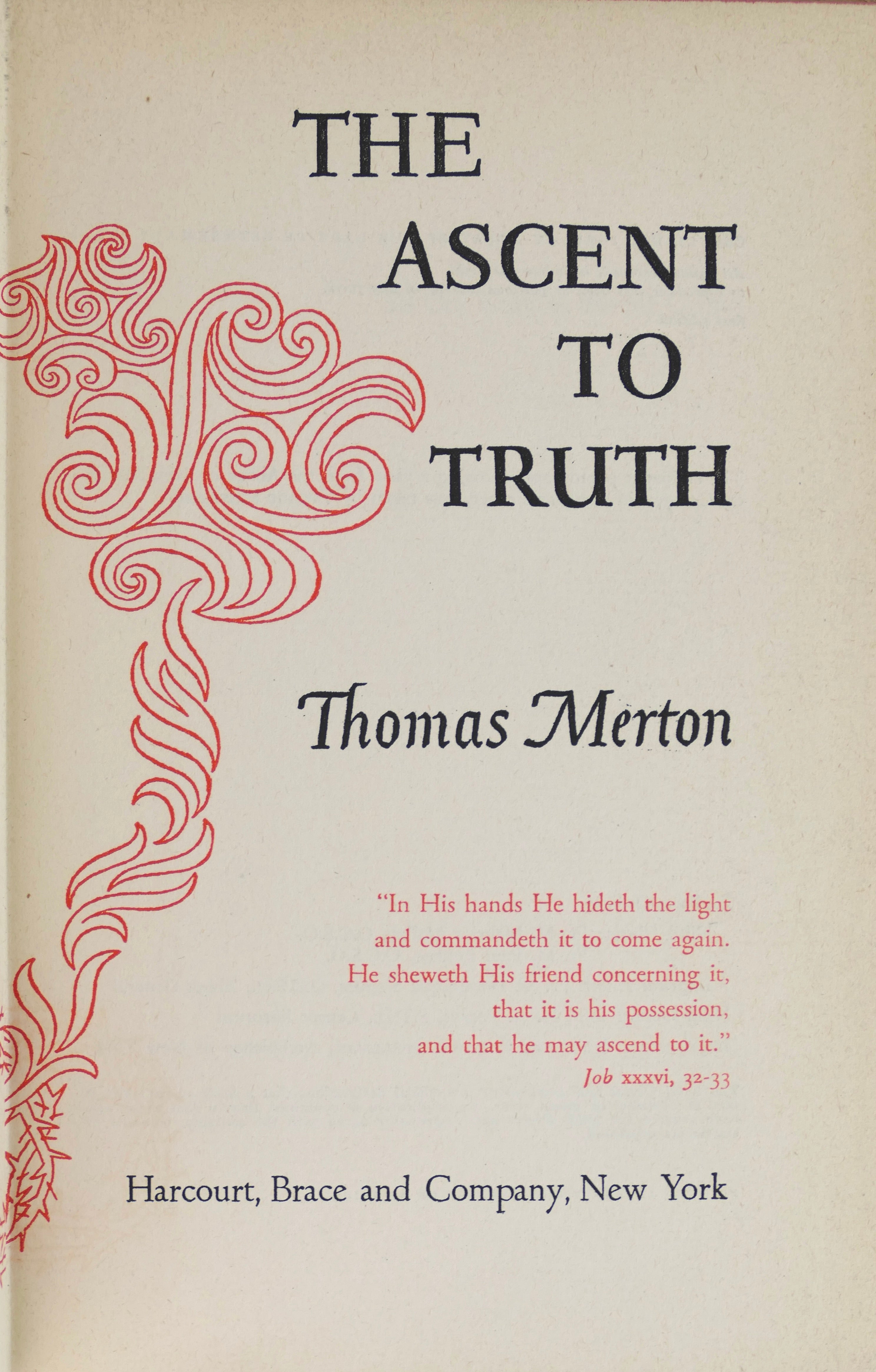 Merton, Thomas. (1915 - 1968). "The Ascent to Truth" - First Edition. New York: Harcourt, Brace and Company. 1951. First.