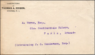 Edison, Thomas. (1847–1931) Signed Stock Certificate