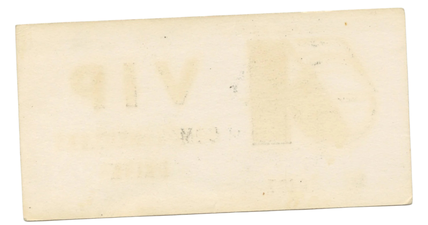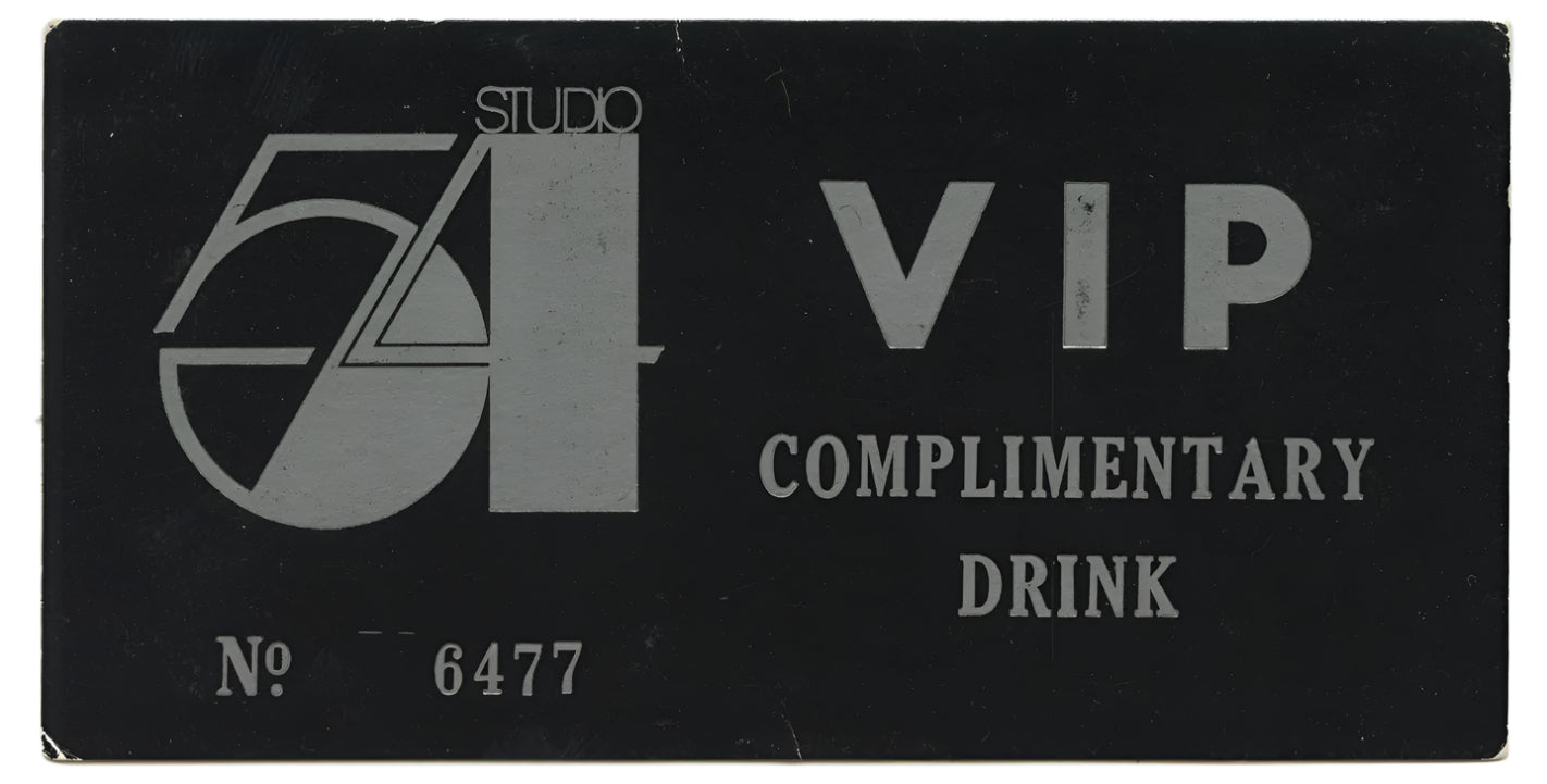 Unused Studio 54 numbered complimentary drinks ticket, 4.5 x 2 inches. In uncommon and virtually pristine condition and featuring the club's iconic logo.