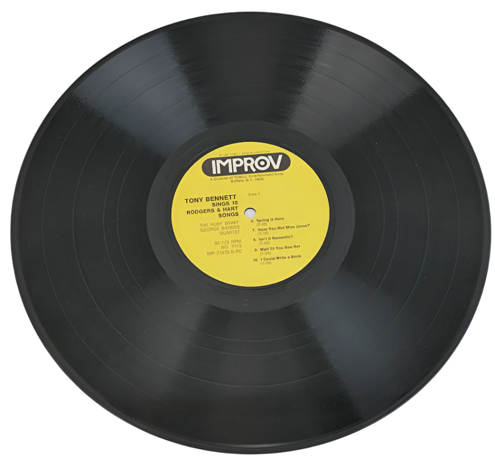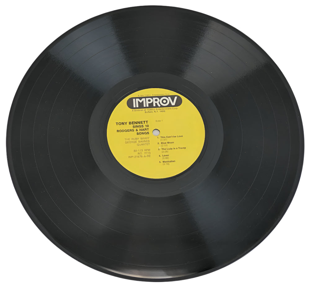 Signed LP of the legendary American crooner, "Tony Bennett Sings Rodgers & Hart" featuring the Ruby Braff, George Barnes Quartet. Signed "To Lee, THANK YOU. Tony Bennett," when he appeared for an interview at radio station KABC in Los Angeles in the late 70s. A few small creases and rubbing, overall fine. Record untested but in apparently fine condition.