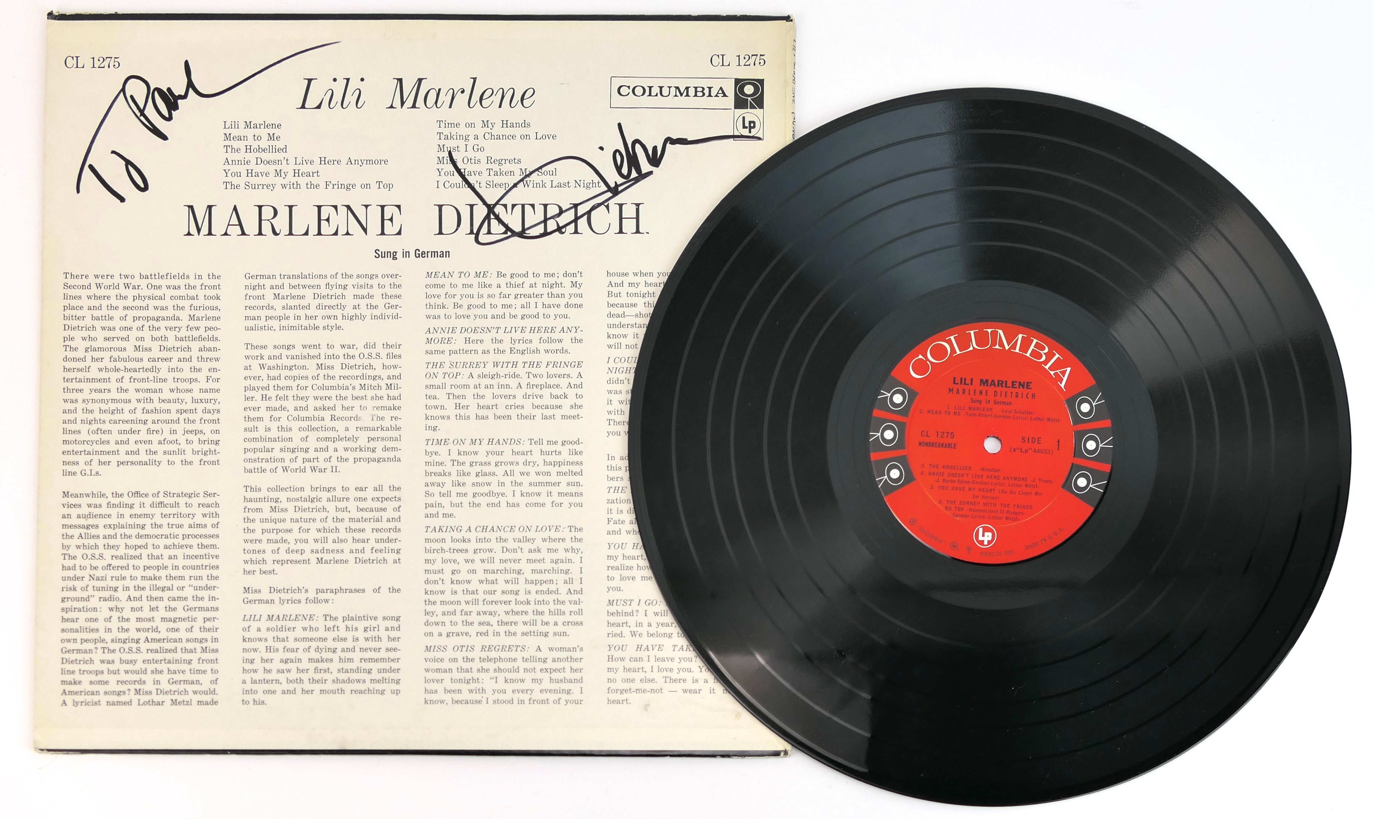 Dietrich, Marlene (1901–1992) . "Lili Marlene: Marlene Dietrich" - SIGNED LP.