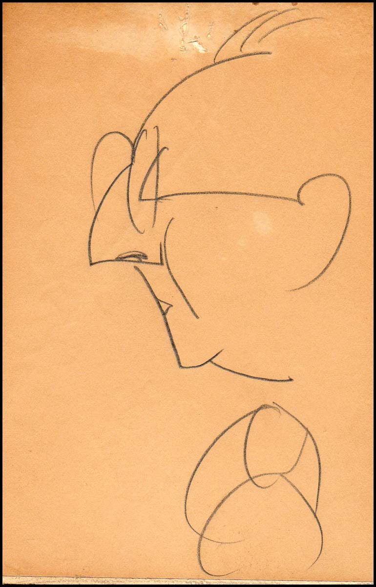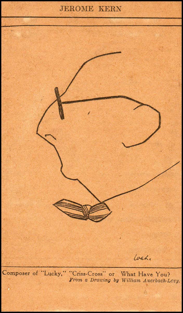 Original pencil caricature drawing of the American composer by the important Russian-American artist. 10 x 15 cm. Sold together with a newspaper reproduction of another Auerbach-Levy caricature of Kern. Both toned, the original piece mounted to rigid backing, small area of abbrasion at top, else fine. Both pieces from the personal files of Jerome Kern, acquired by descent through his daughter's estate.