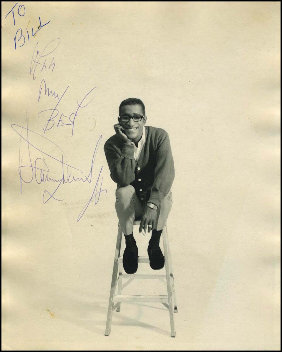 Signed black and white 8 x 10 inch photograph of the legendary American entertainer, a member of the so-called "Rat Pack" of the 1960's. Signed "To Bill, All my Best, Sammy Davis Jr." Mounting remnants on verso, edges a little rippled, "To Bill" evidently added later in a different ink, else fine.