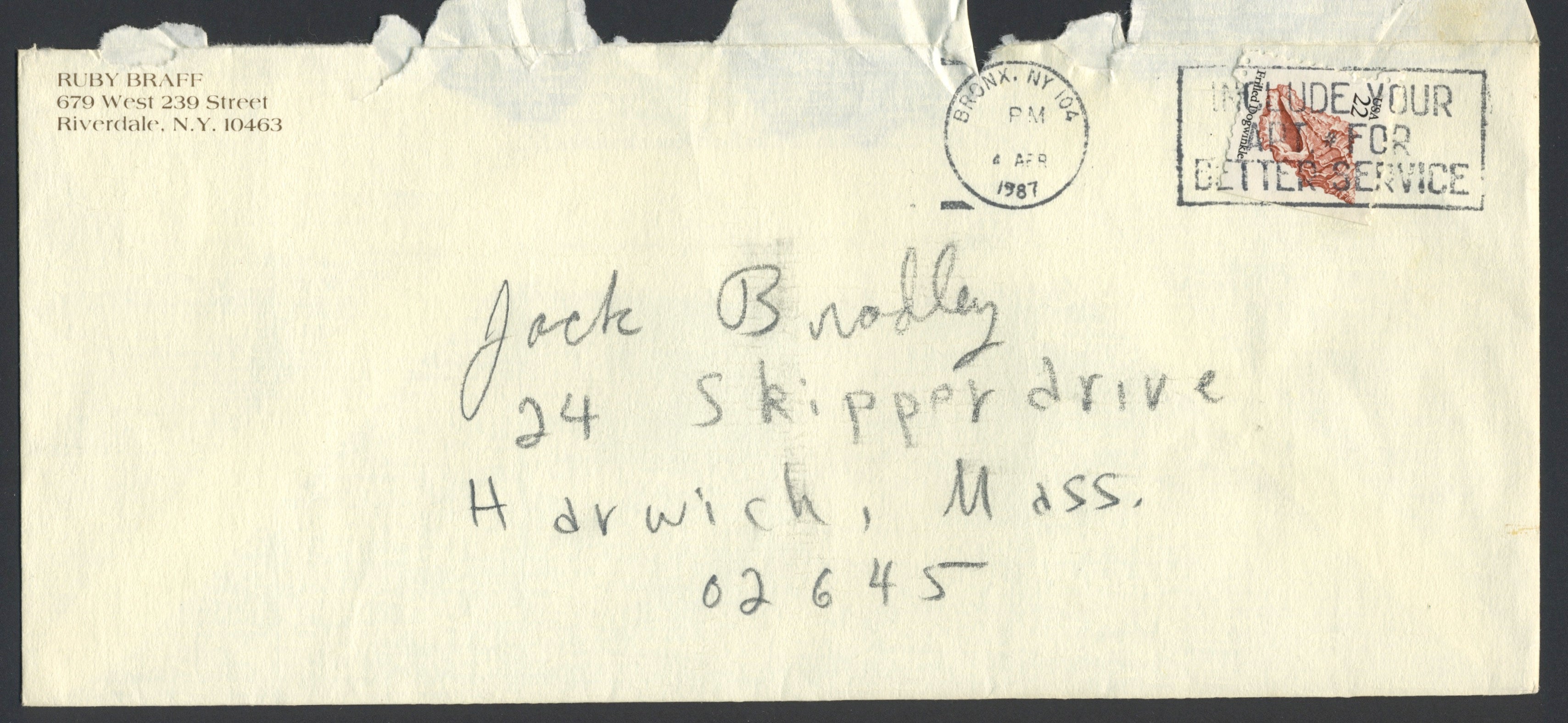 Braff, Ruby. (1927–2003). Autograph Letter to Jack Bradley.