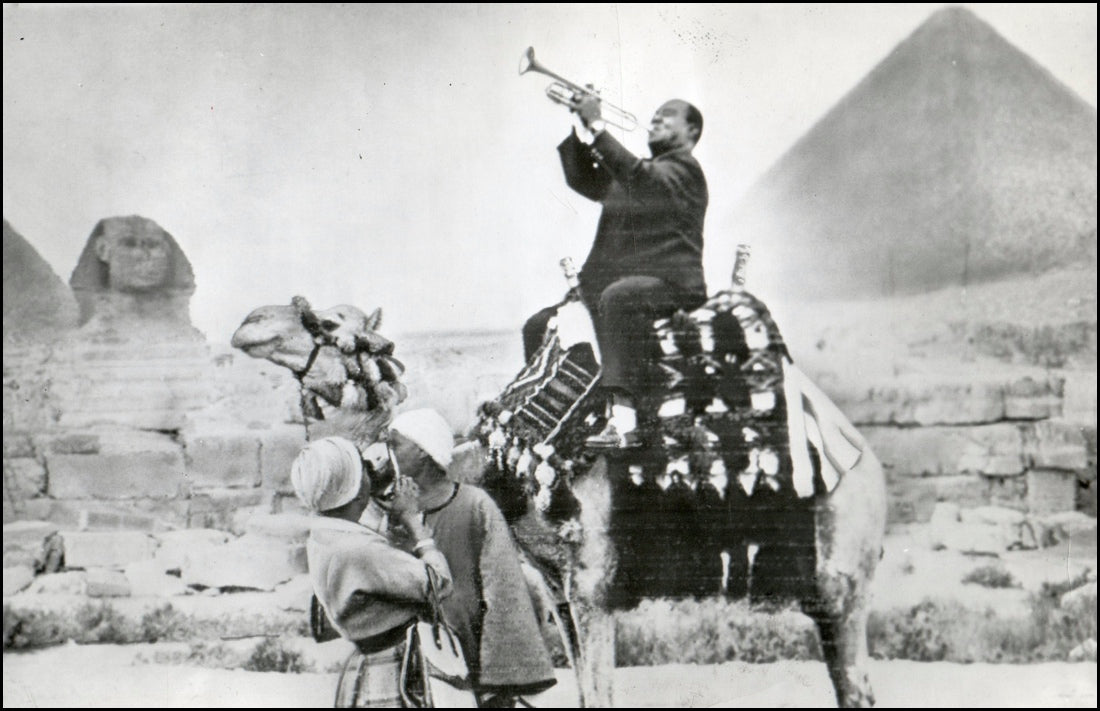 Remarkable vintage 10 x 8 inch glossy publicity photograph of the Esquire All Stars, the first well-known integrated music ensemble, together only about a year but who opened up the white supper club circuit to black performers. Boldly signed and inscribed in green ink by Armstrong and Jack Teagarden and signed additionally in blue ink by Arnell Shaw, Earl "Fatha" Hines, Cozy Cole and Barney Bigard. Small tear to lower margin extending just to edge of Armstrong's signature, otherwise in very fine condition.