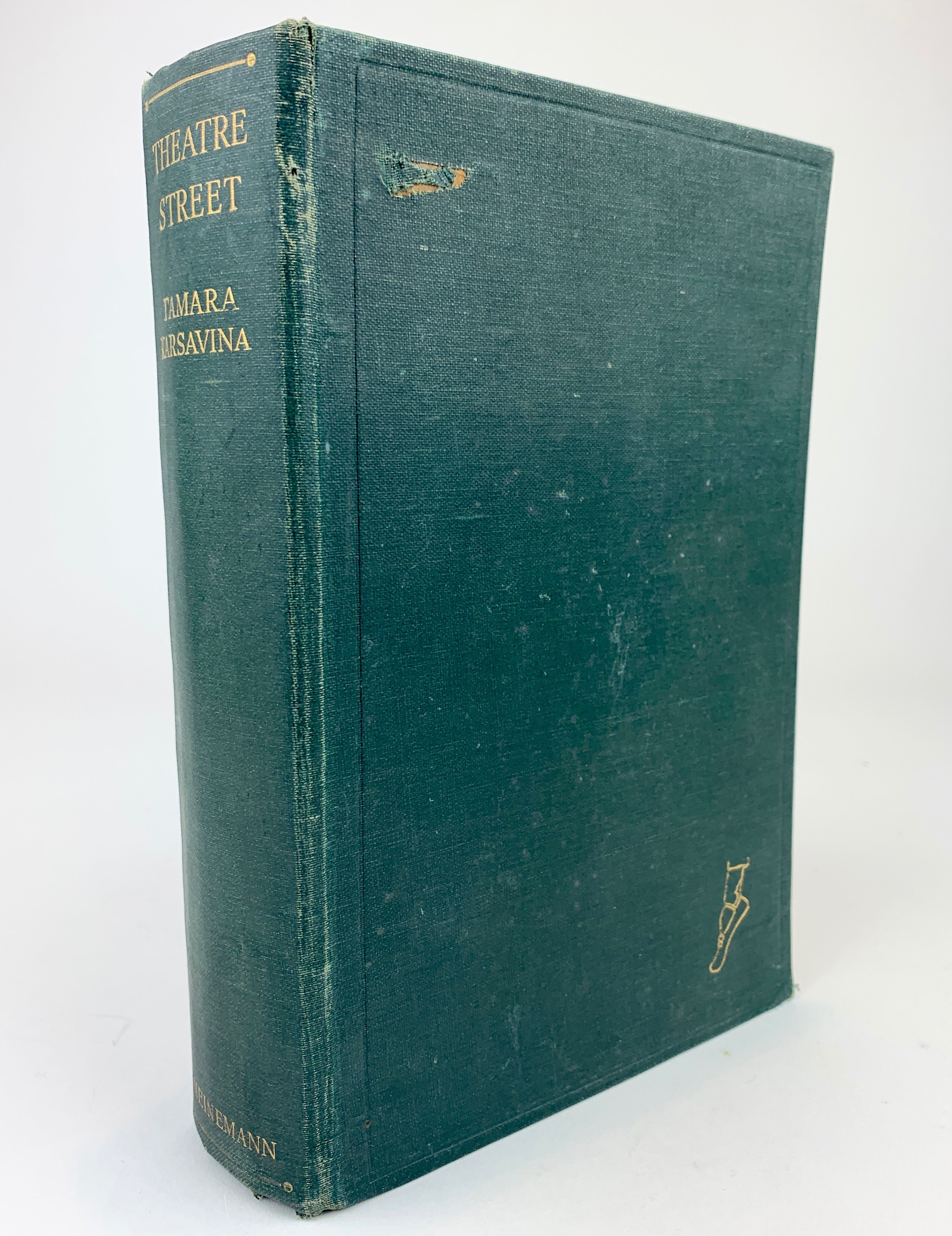 [Ballets Russes] Karsavina, Tamara. (1885–1978). Theatre Street - INSCRIBED. London: William Heinemann. 1930. 2nd Printing. Signed copy of the autobiography of the great ballerina, Nijinsky's dance partner at the Ballets Russes, inscribed and signed on the front free endpage ("To 'Pearl' and 'Feonna' in one / with love / Tamara Karsavina / 1930"). 341 pp. Plain photographic illustrations, blue cloth rather worn, lacking dust jacket.