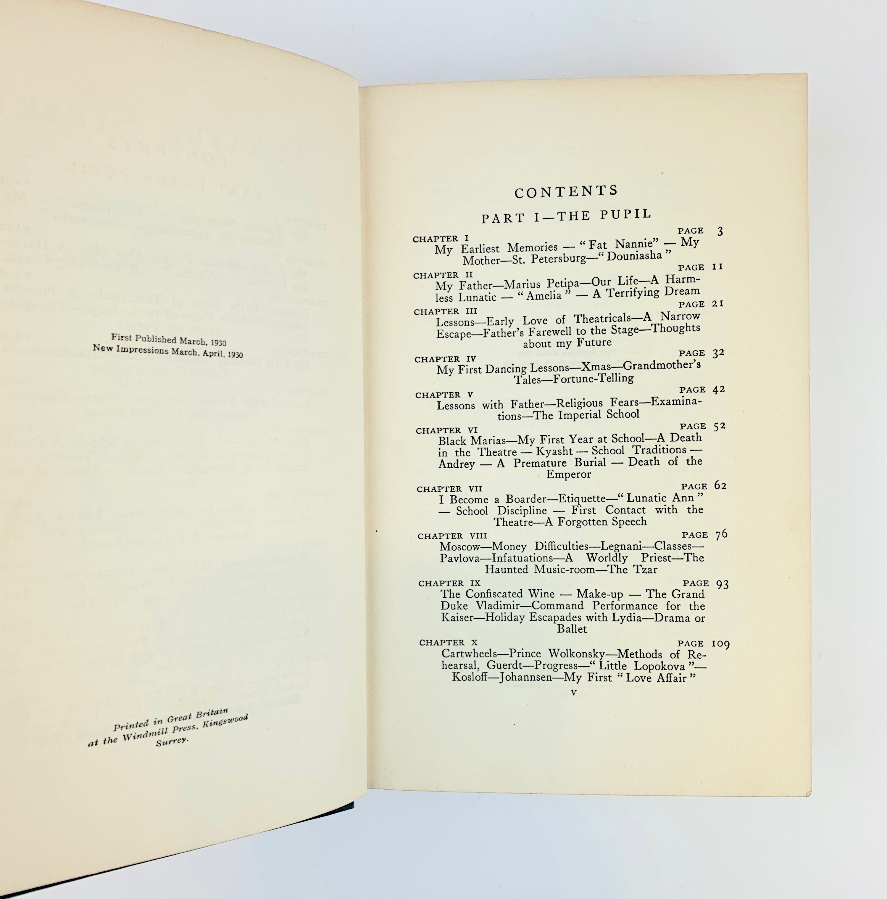 Karsavina's account of her early life at the Imperial Ballet School, and her subsequent career at the Marinsky Theatre and the Ballets Russes.