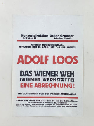 175. Loos, Adolf. (1870–1956) Das Wiener Weh - 1927 Handbill