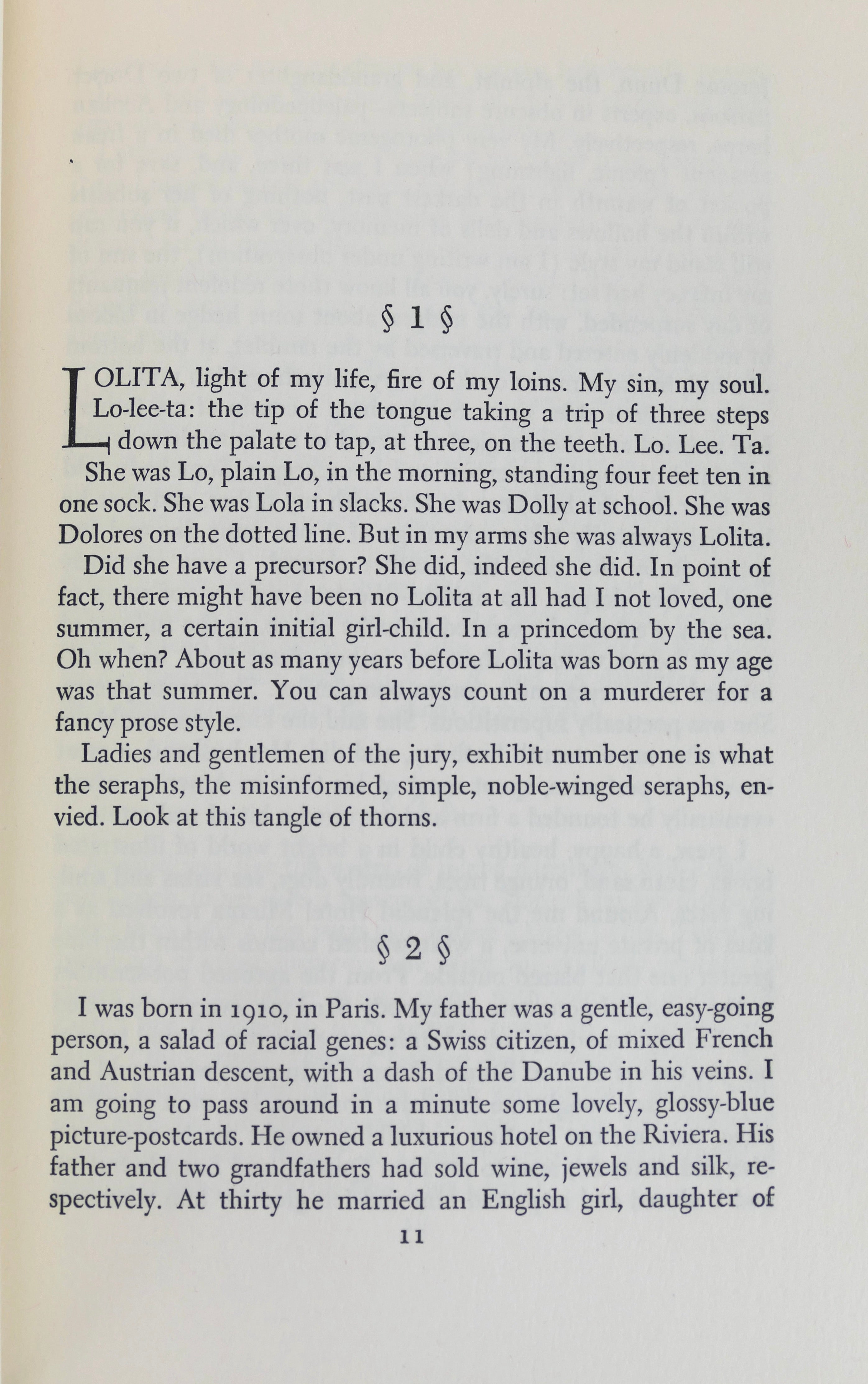 First published in 1955, Lolita is notable for its controversial subject: the protagonist and unreliable narrator—a middle-aged literature professor called Humbert Humbert—is obsessed with the 12-year-old Dolores Haze, with whom he becomes sexually involved after he becomes her stepfather. "Lolita" is his private nickname for Dolores. The novel was originally written in English by Russian-American novelist Nabokov and first published in Paris by Olympia Press.