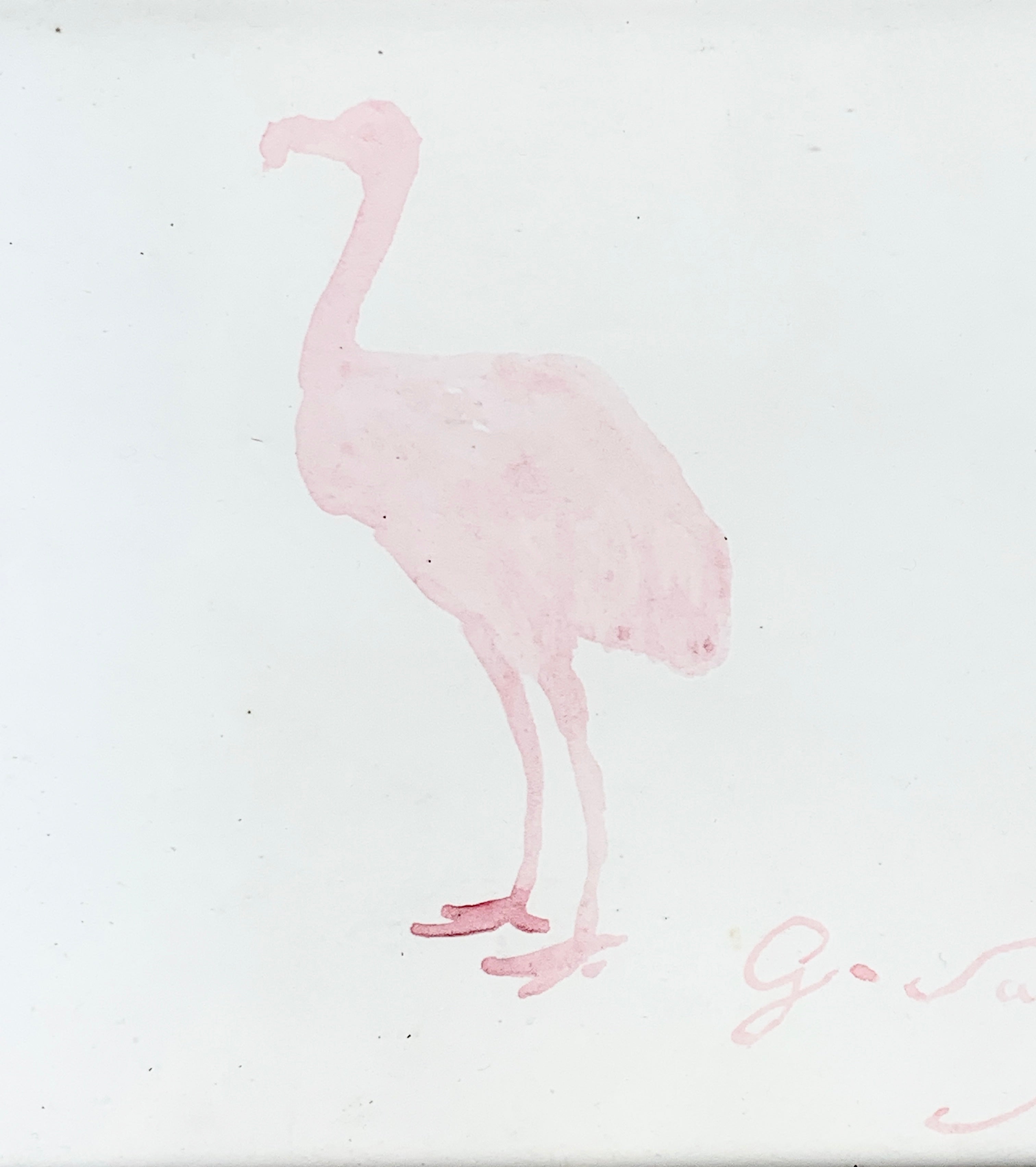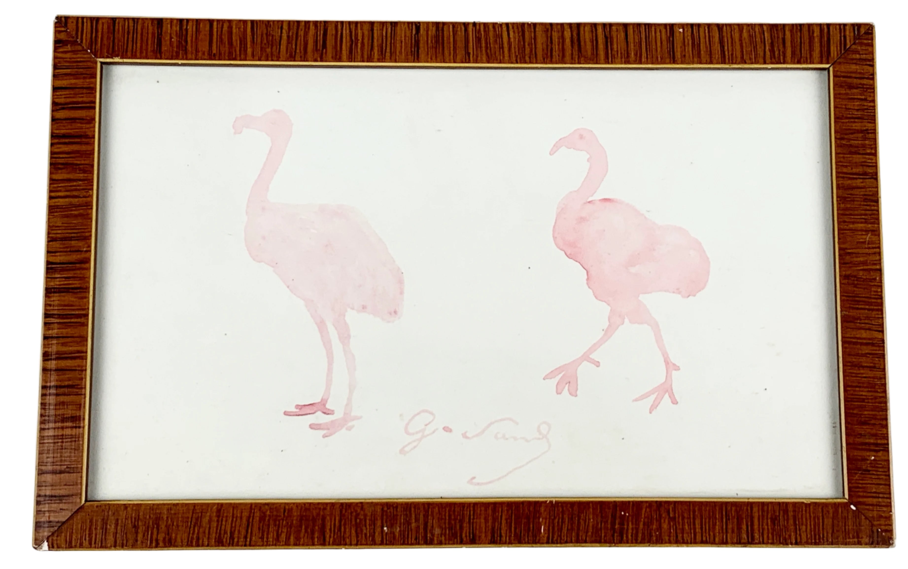 Watercolor of two flamingos with Sand's signature painted beneath. In very fine condition, 10.8 x 6.9 inches (27.5 x 17.5 cm.).