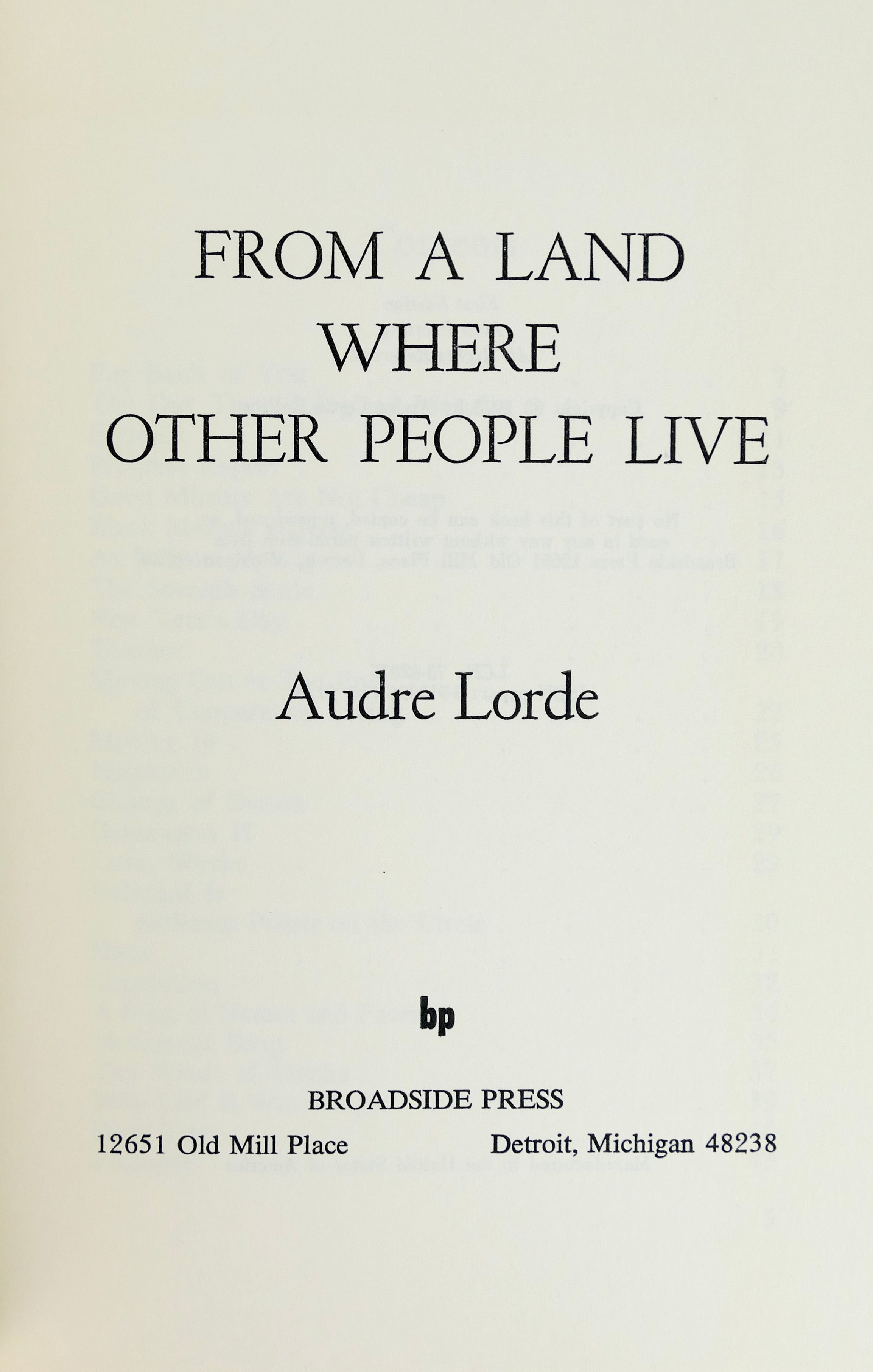 8vo. 46pp. Saddle-stapled in printed orange wraps. Light dust toning around spine, otherwise a perfect, very fine copy of Lorde's third book of poems, a National Book Award nominee for poetry in 1973.