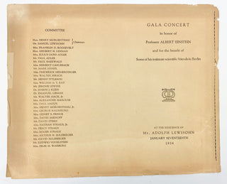 94. Einstein, Albert. (1879–1955) EINSTEIN'S AMERICAN DEBUT ON VIOLIN: Original Program for a 1934 Gala Benefit Concert